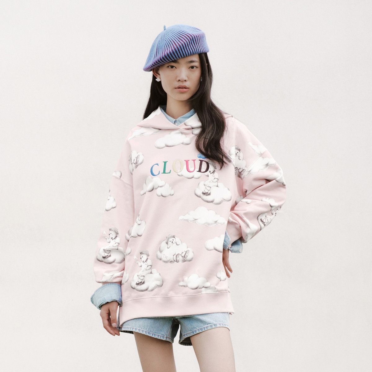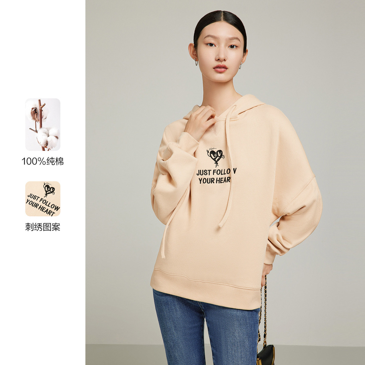 小熊甜趣连帽宽松舒适刺绣卫衣上衣女士 630081