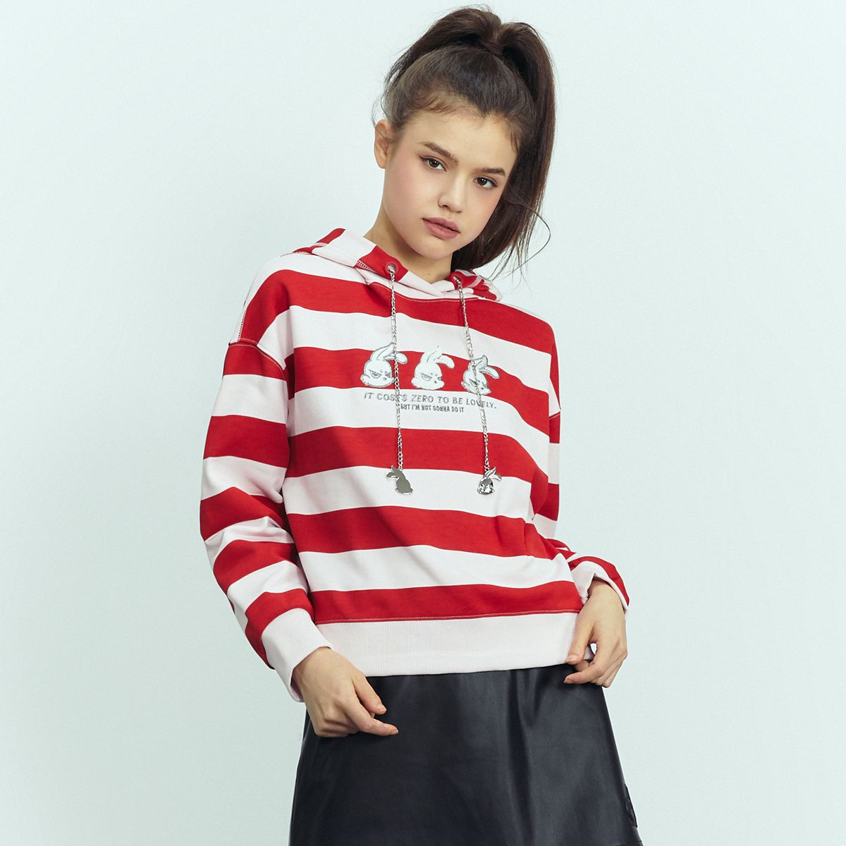 【时尚条纹】夏季兔子刺绣宽松连帽卫衣女 005978