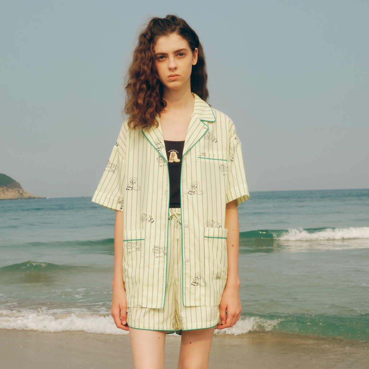 小熊条纹短套装睡衣莱赛尔家居服女夏 279745