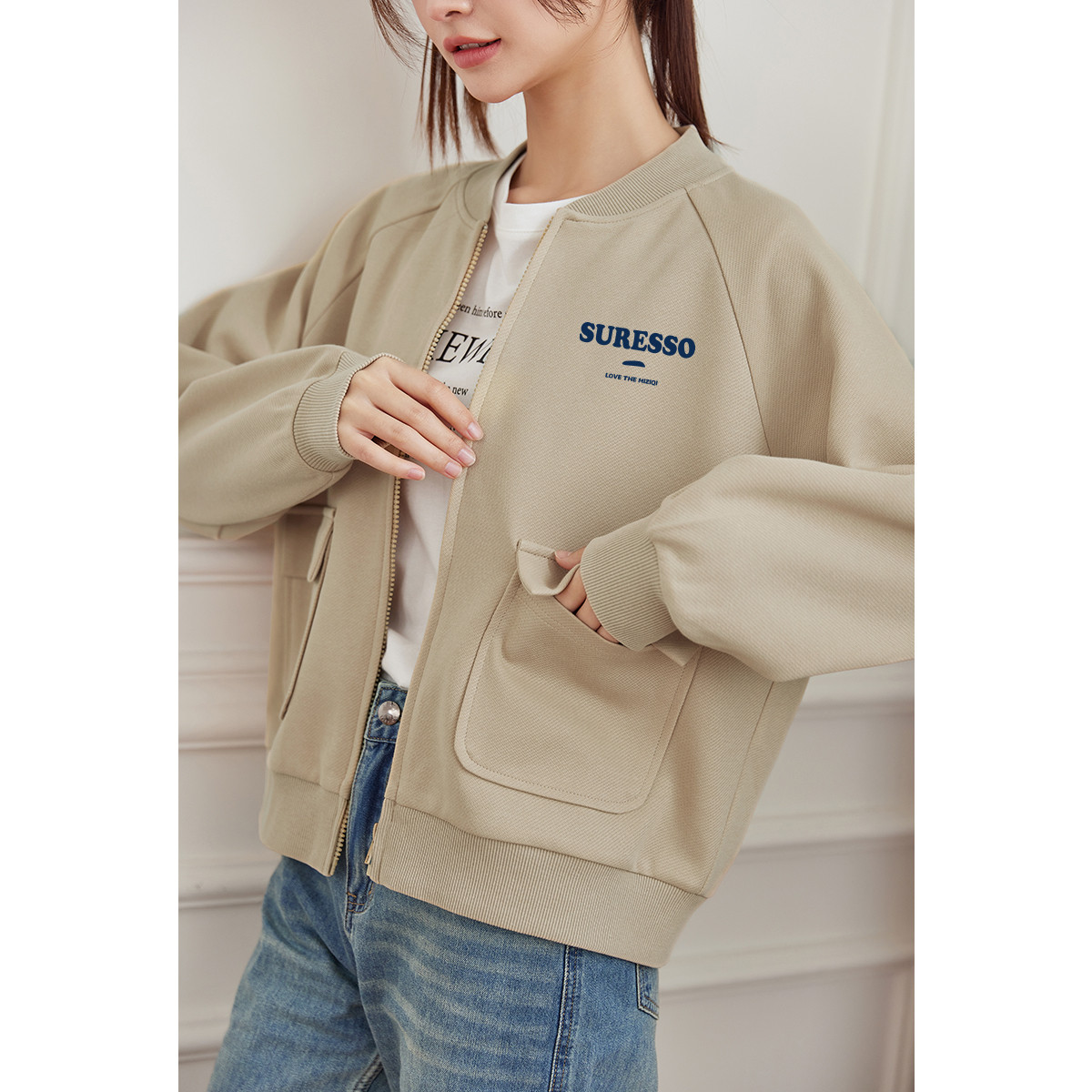 米子旗春秋款女式卫衣字母印花宽松潮流拉链口袋上衣女 155546