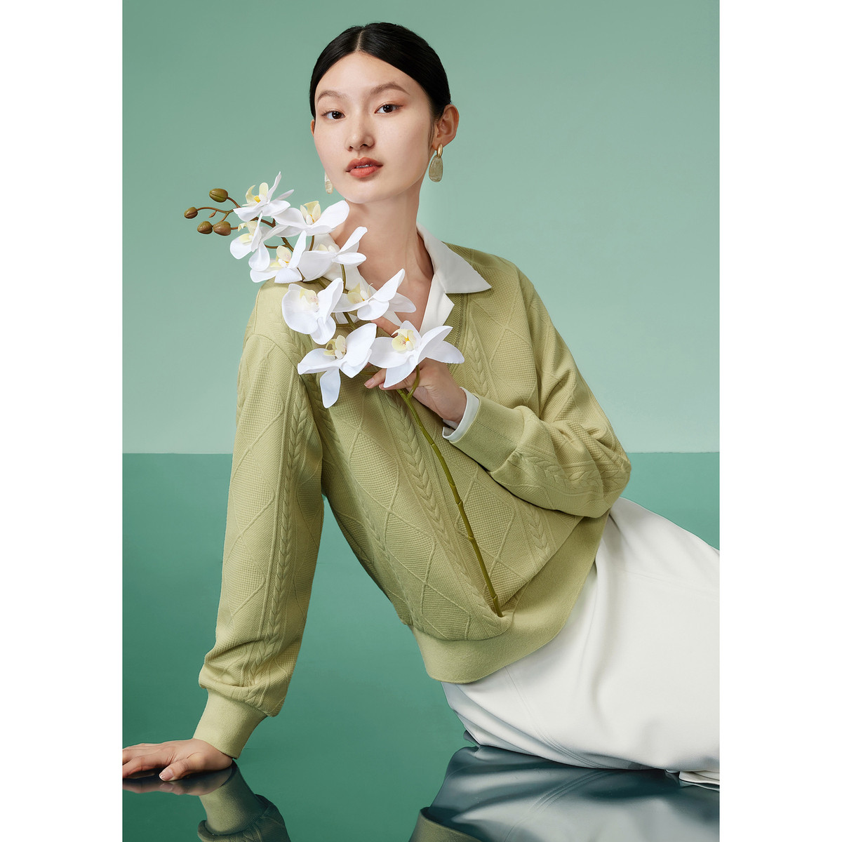 JZ玖姿设计感提花套头针织衫女装春季休闲卫衣 210380