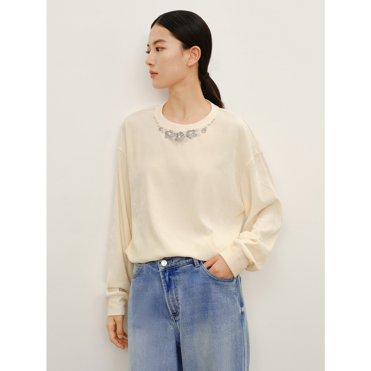 玖姿旗下安娜蔻系列休闲宽松重工串珠长袖卫衣女秋季 624396