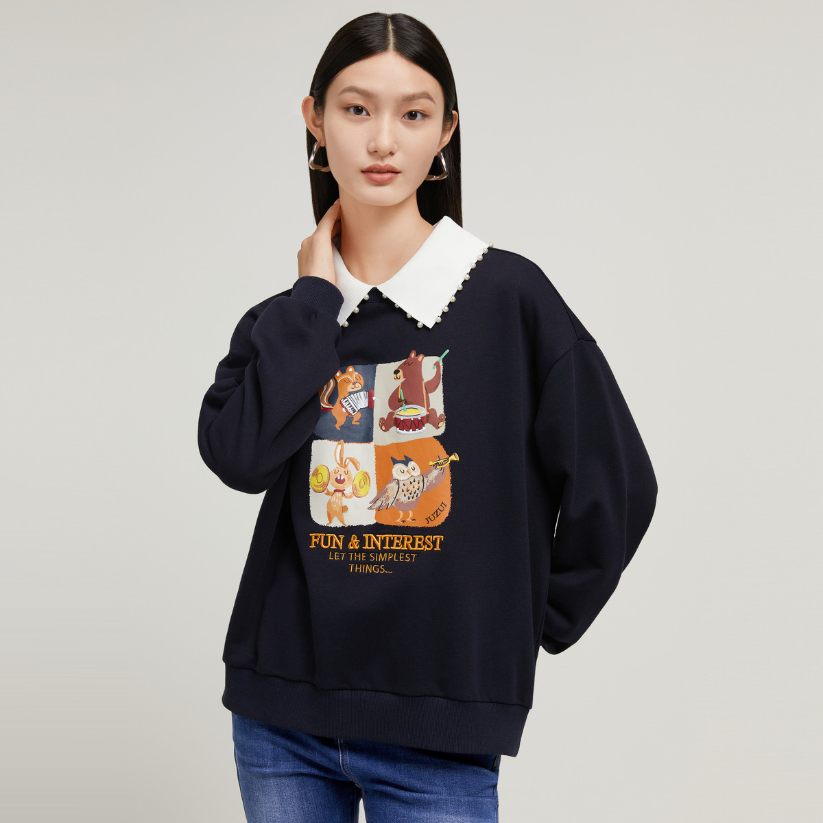 JZ玖姿丛林舞会卫衣女装秋季动物音乐印花时尚休闲上衣 985356