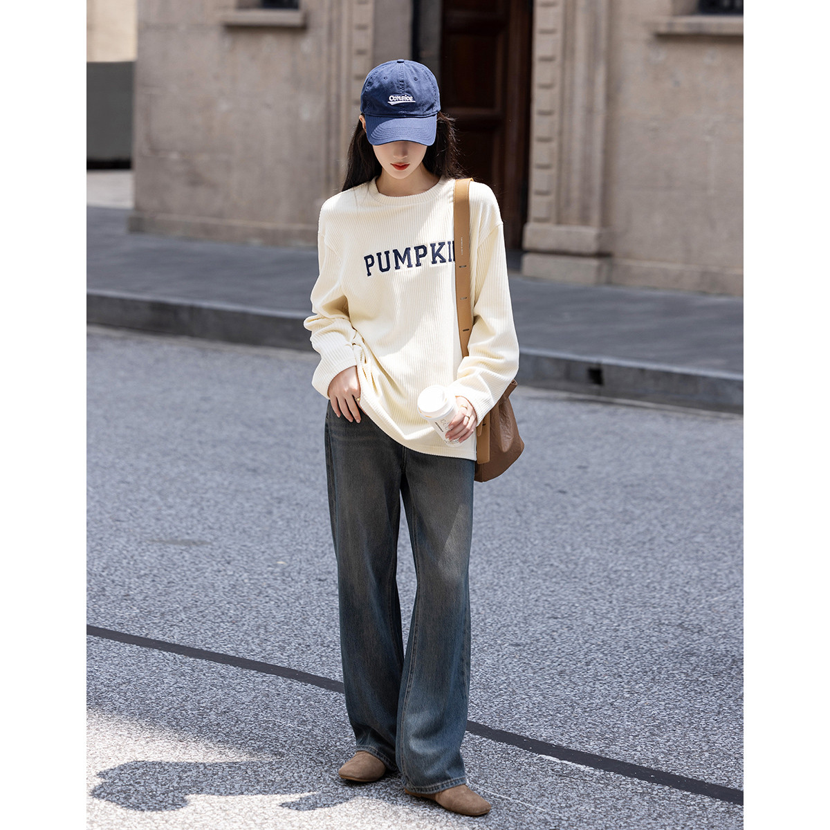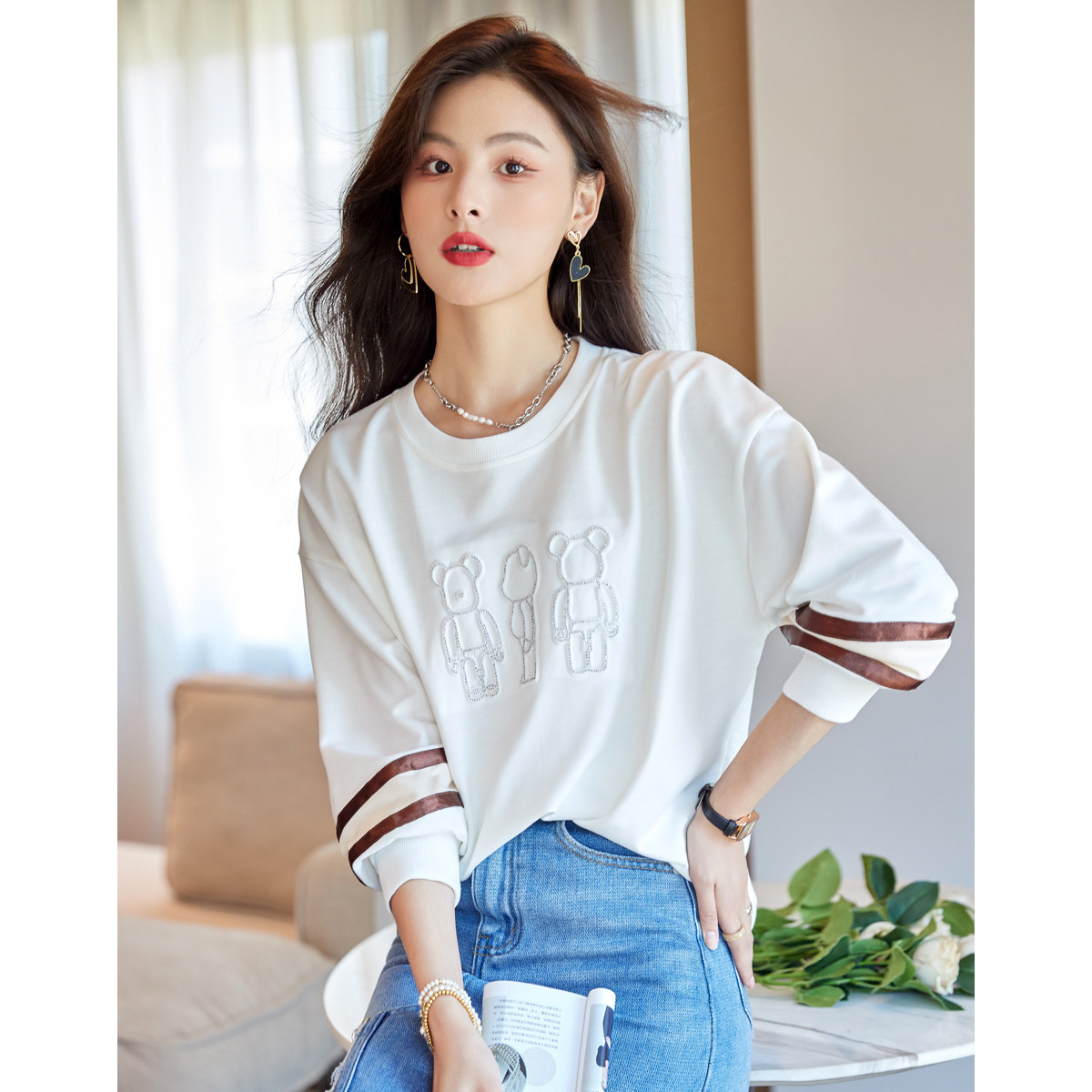【爆款推荐】圆领基础百搭图案清新可爱时髦感春季女式卫衣长袖t 408024