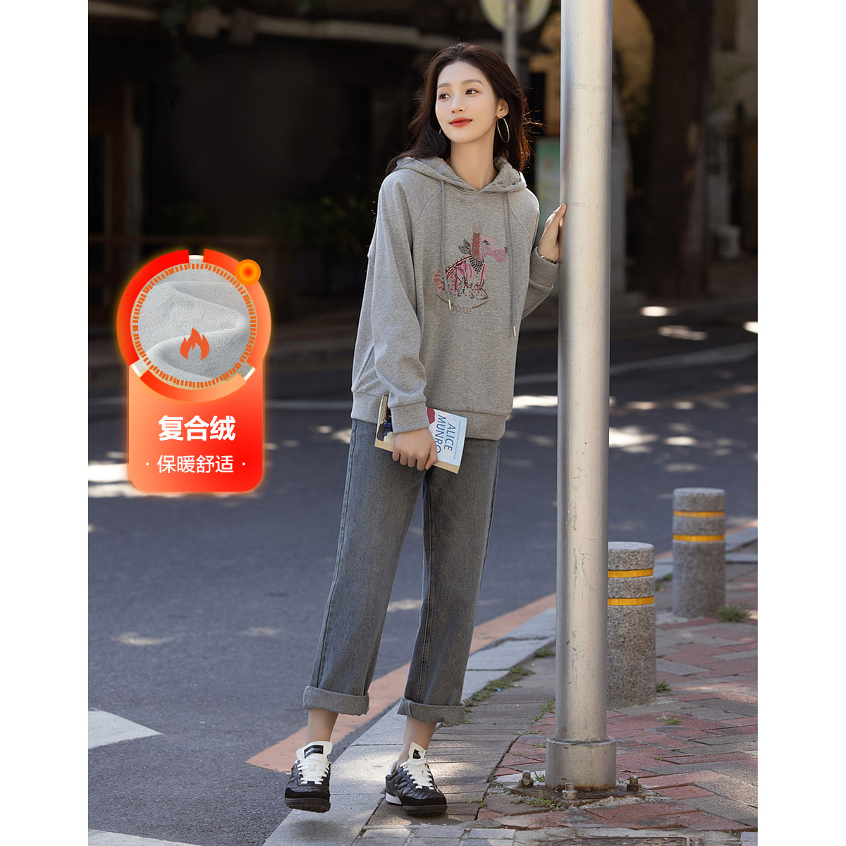 【童话动物小镇】冬云感纯棉加绒连帽萌狗绣花舒适遮肉卫衣女上衣 511681