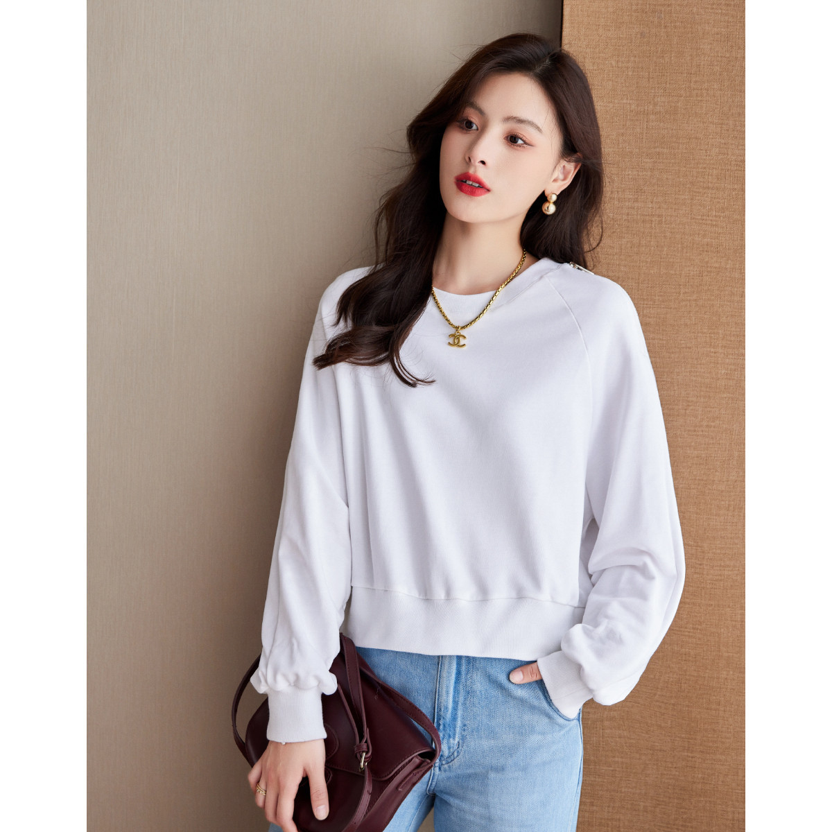米子旗春秋季早春款圆领卫衣外套宽松短款小个子卫衣 331802