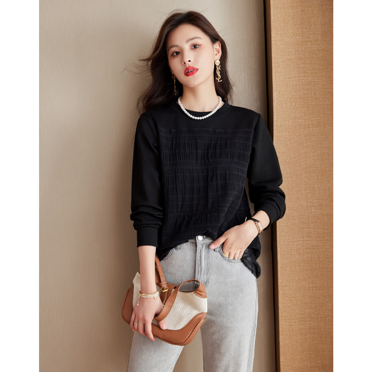 【好穿不挑人】春季简约风云感棉立体活页可调节橡筋卫衣女上衣 015489