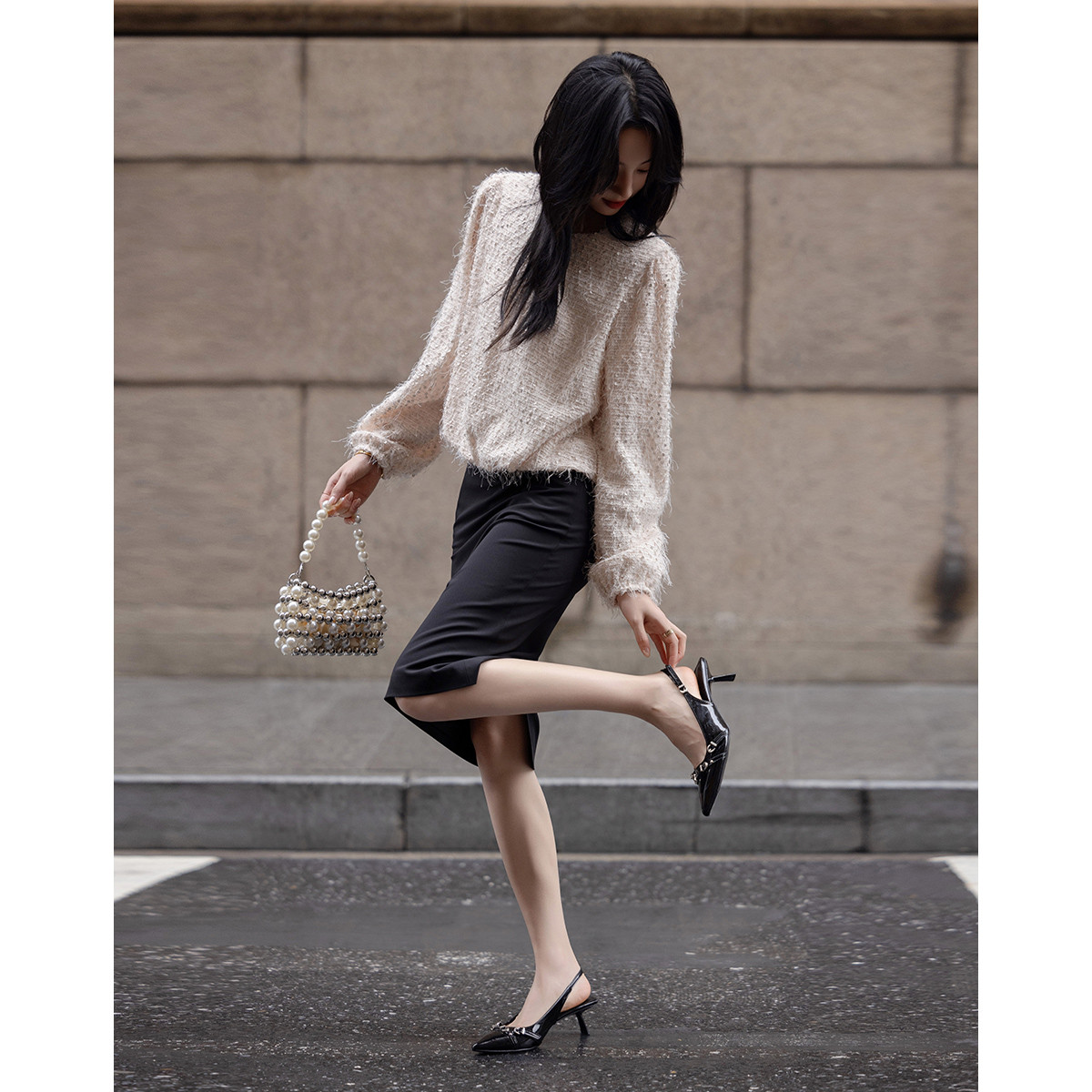【自由之诗】秋优雅风圆领肌理珠片针织弹力藏肉卫衣女上衣 318593