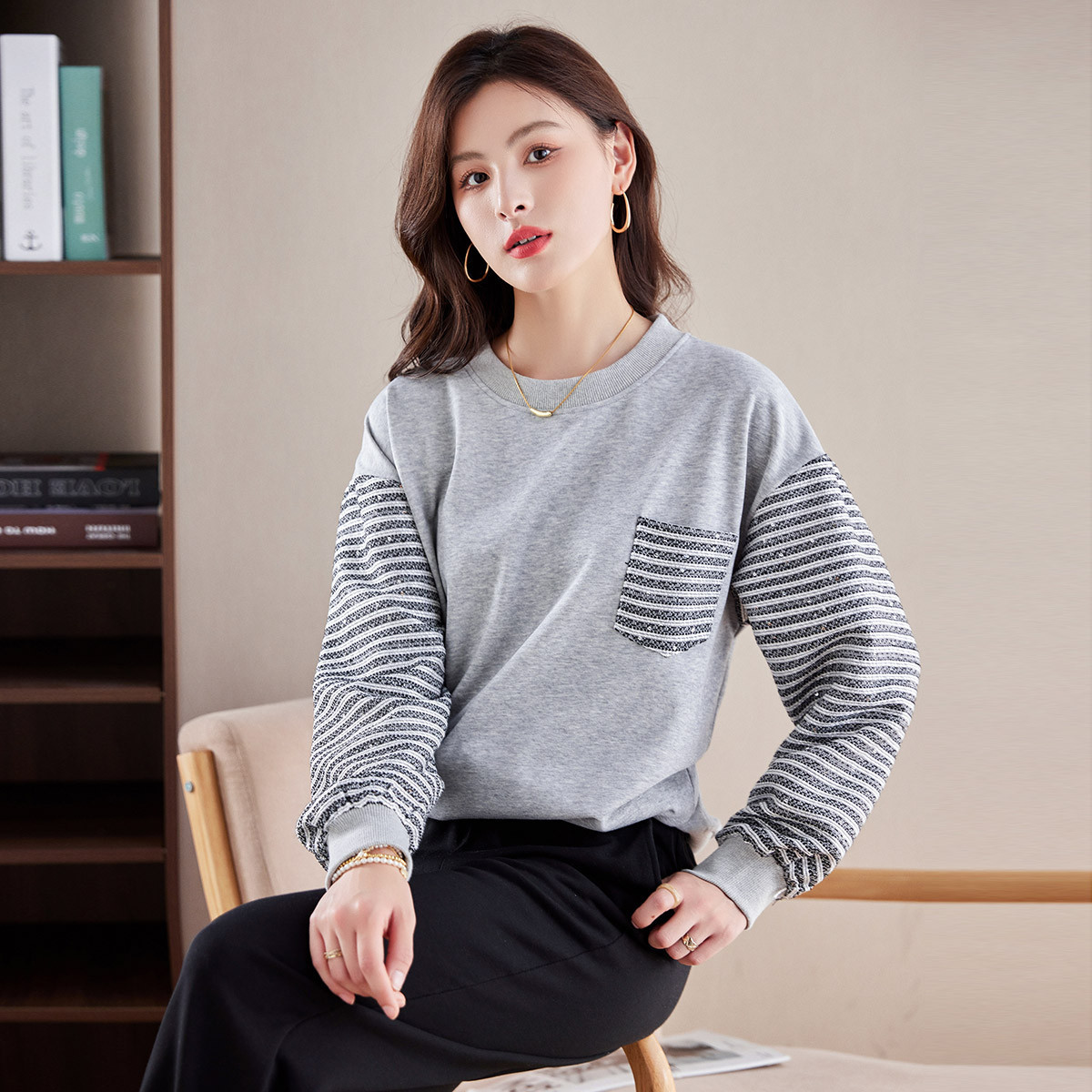 图案条纹纯色拼接圆领宽松显瘦百搭款女式卫衣春季 403928