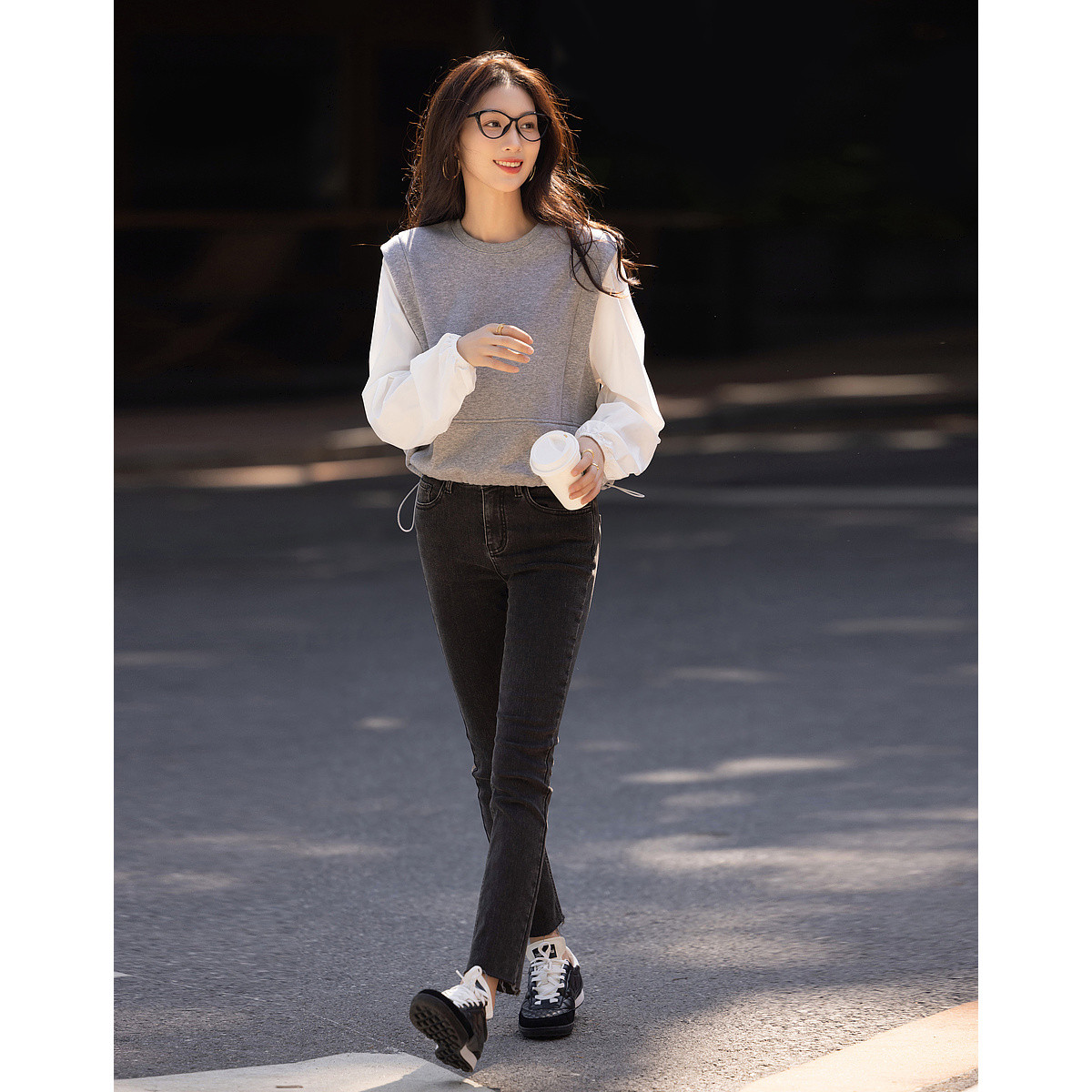 网红款假两件女式卫衣圆领朦胧感慵懒风宽松显瘦潮流时尚感上衣 444888