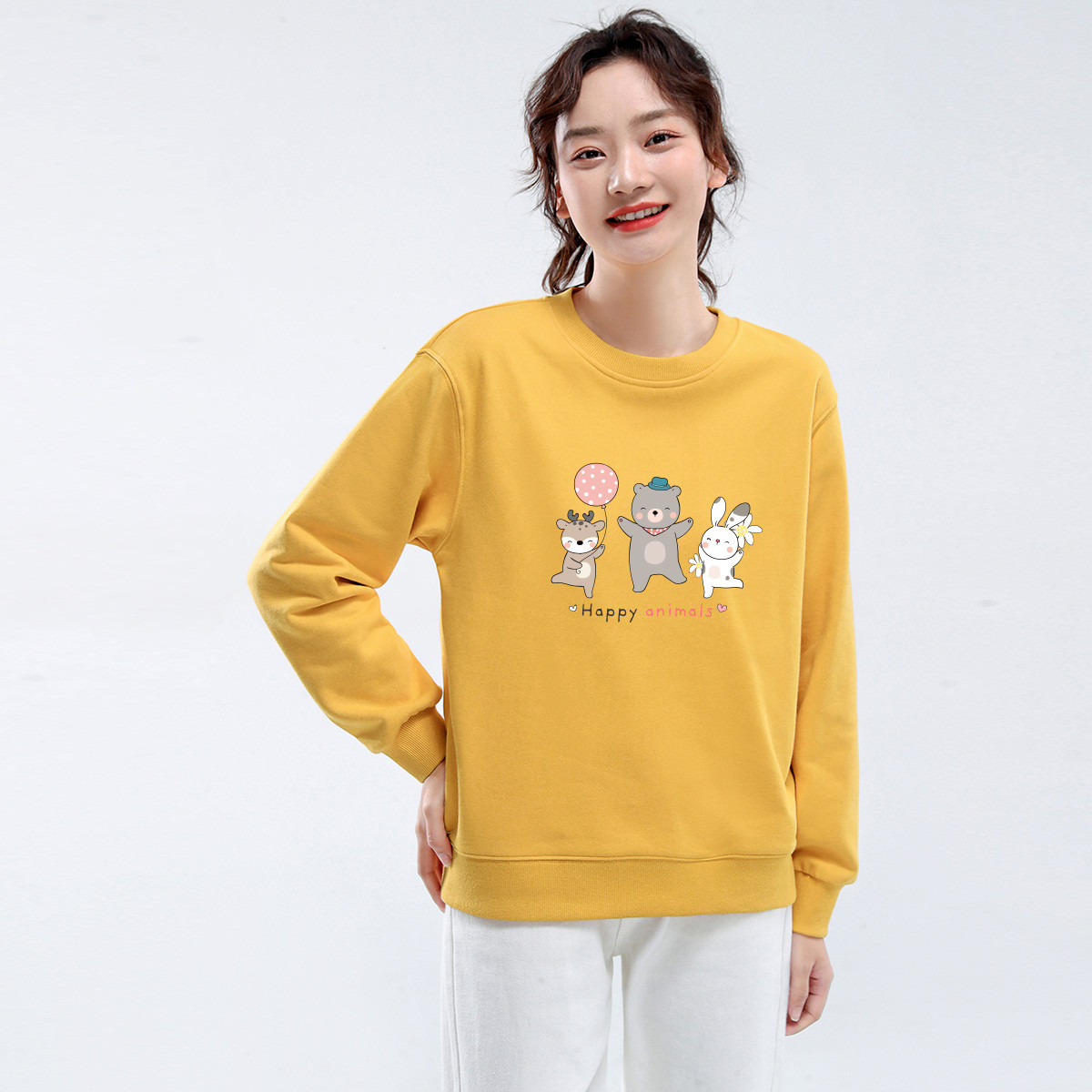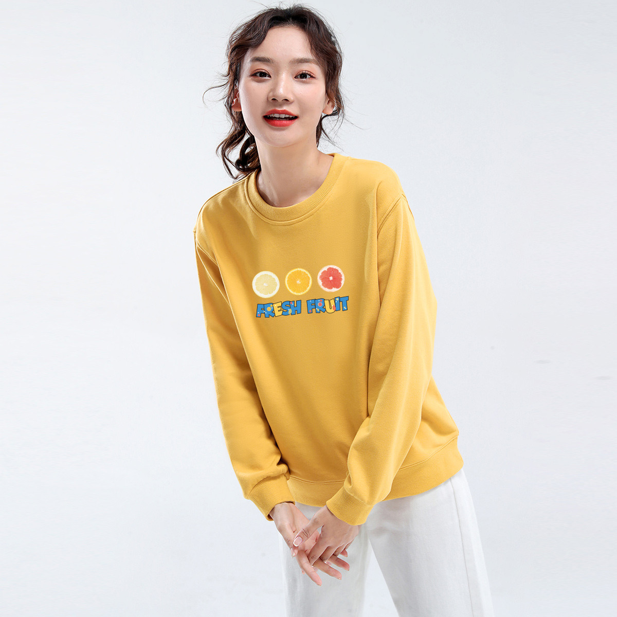 米子旗女式卫衣外套上衣女春秋宽松显瘦无帽印花圆领 820378