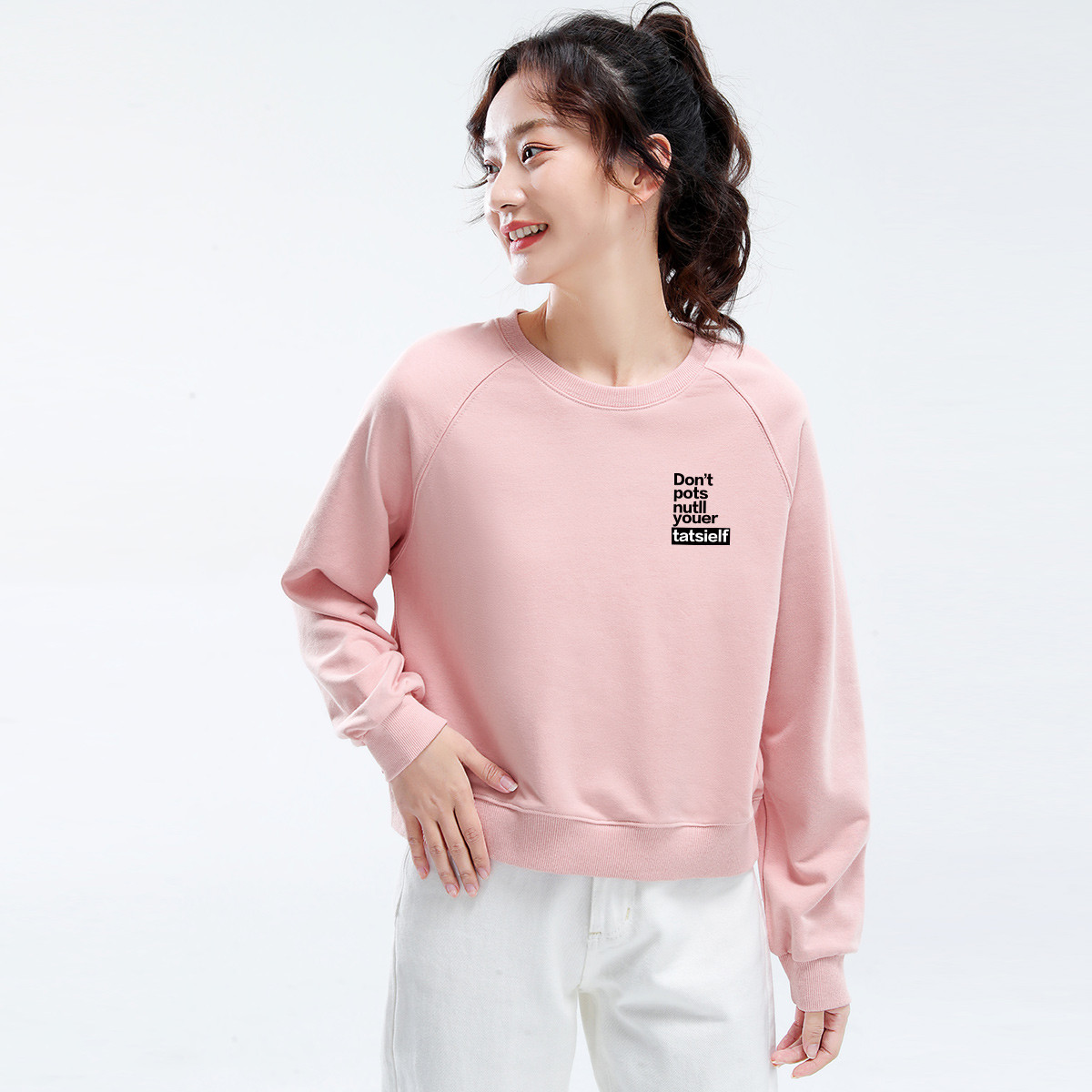 米子旗春秋款女式卫衣外套字母印花百搭圆领长袖短款上衣女 861914