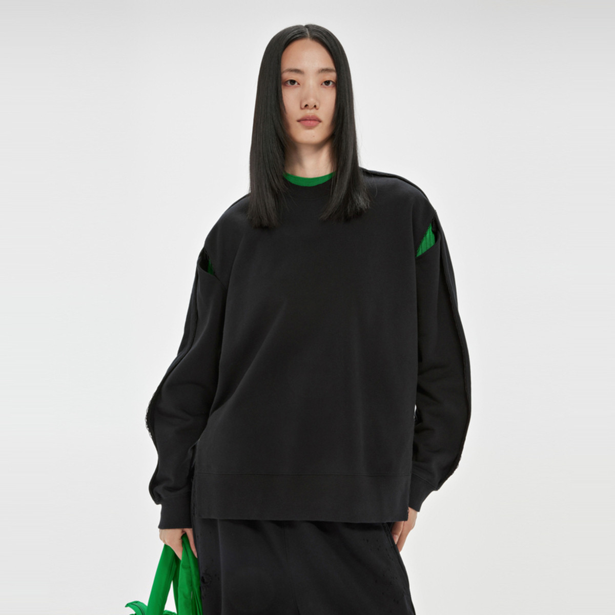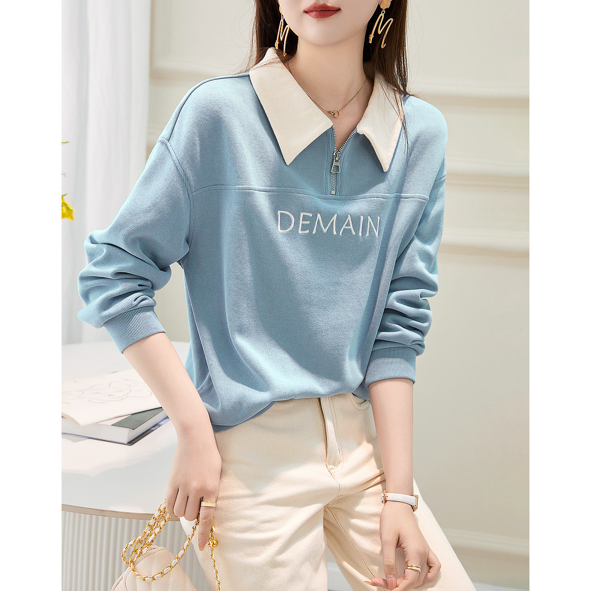 【非正式学院】春季通勤字母绣花撞色翻领拼接卫衣宽松藏肉女上衣 210817