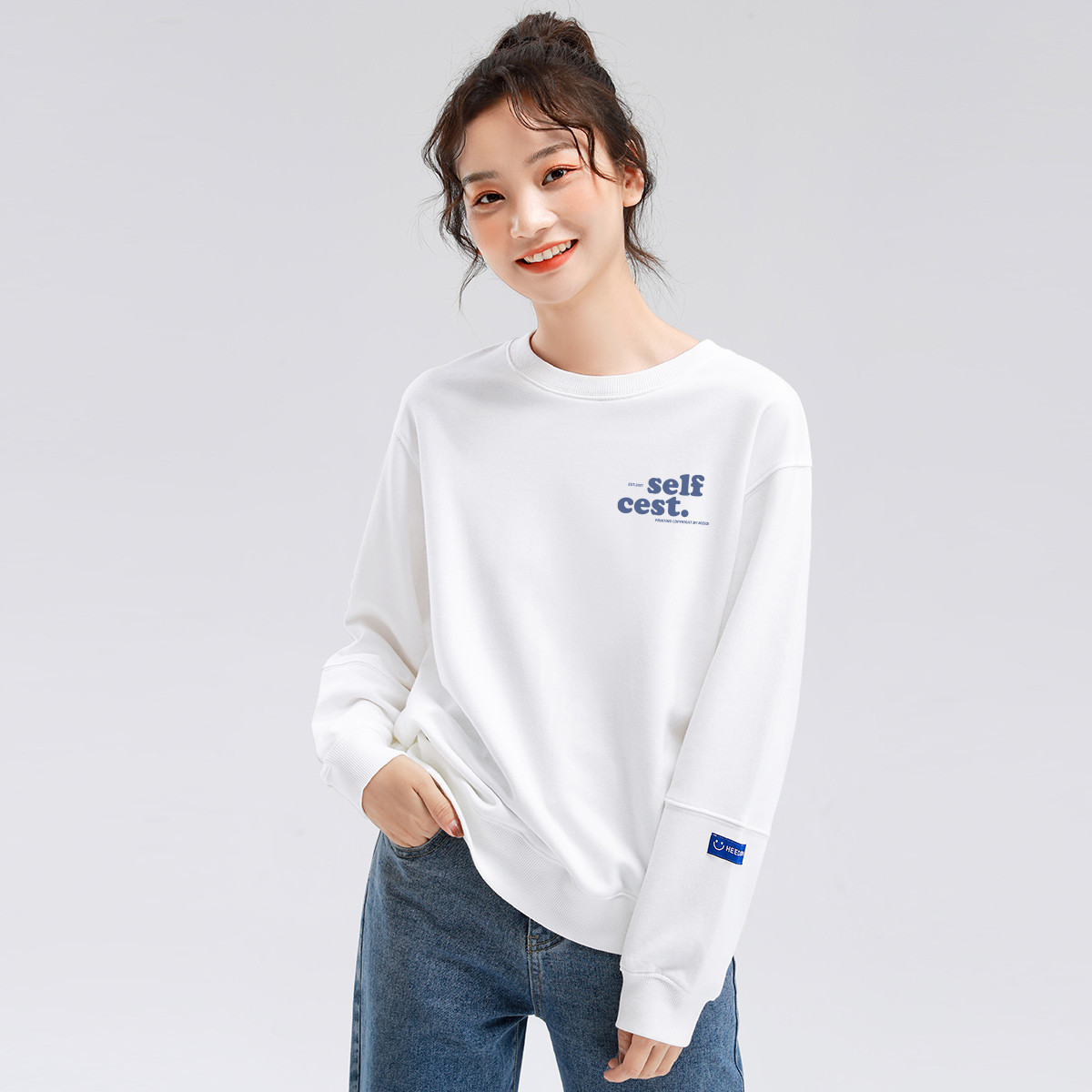 米子旗春秋季早春款圆领印花卫衣慵懒宽松长袖上衣女 841626