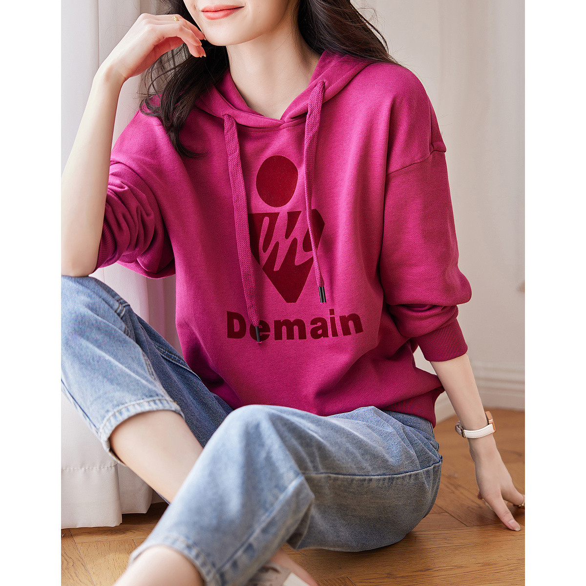 春秋字母植绒印花落肩宽松卫衣女连帽女士卫衣 675713