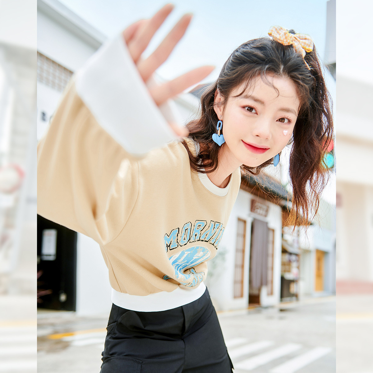 米子旗春秋季早春款圆领卫衣外套宽松短款小个子卫衣 331802