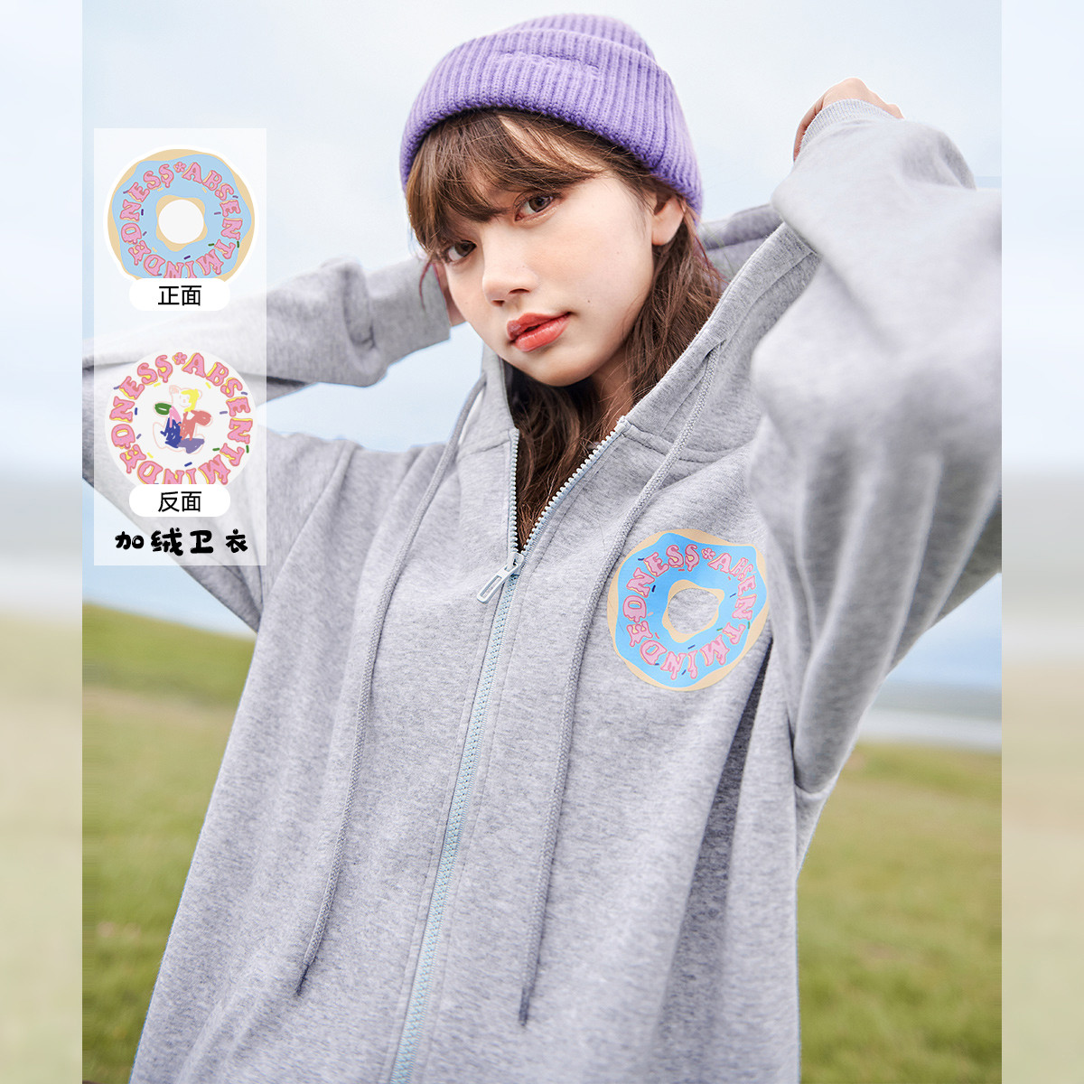 冬印花连帽卫衣女时尚简约休闲宽松长袖开衫 516052