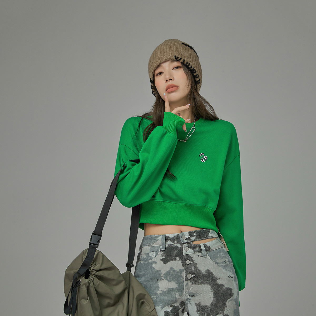 圆领长袖短款卫衣女春超火小个子无帽上衣 274451