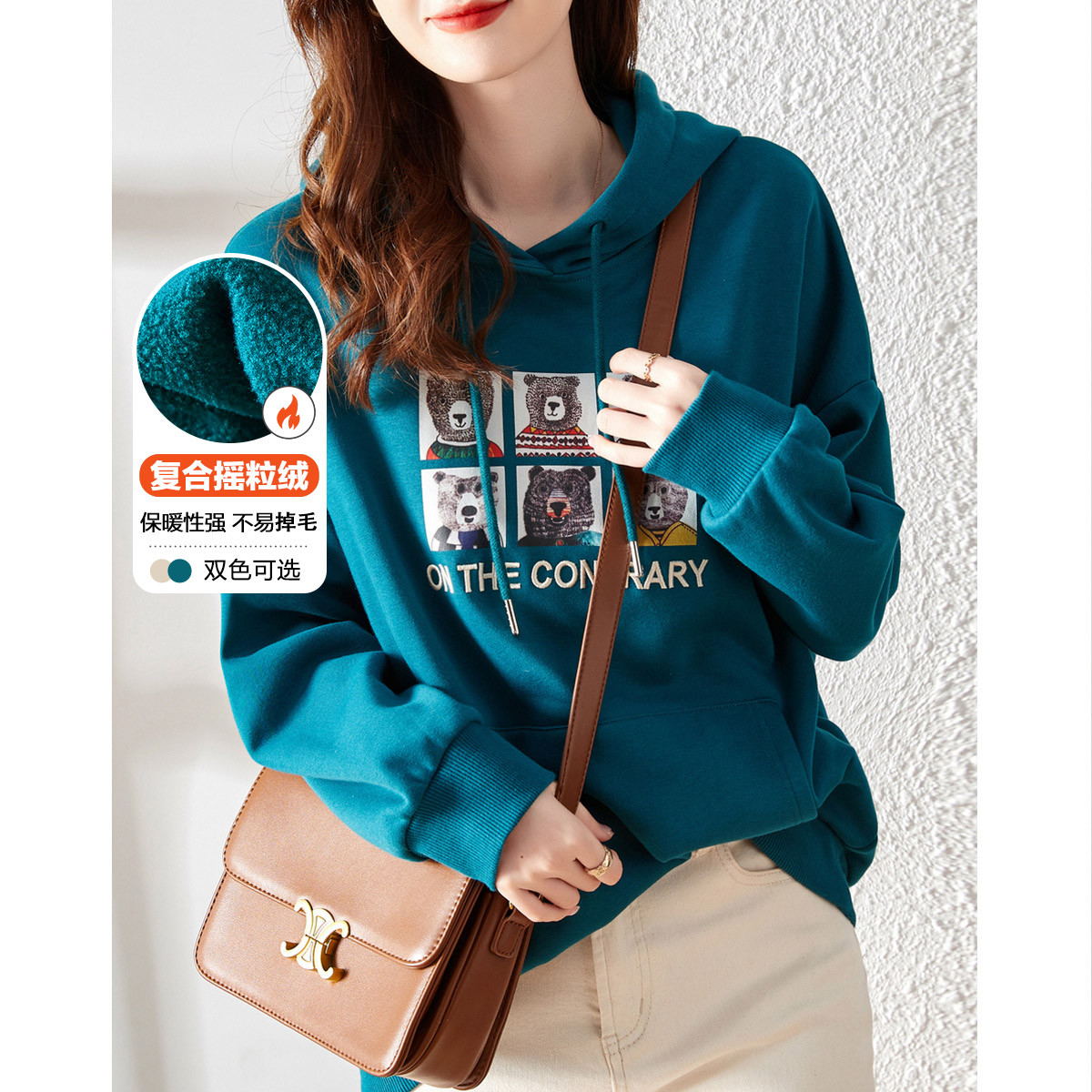 【字母通勤】冬新连帽通勤加绒落肩长袖印花女卫衣 798273