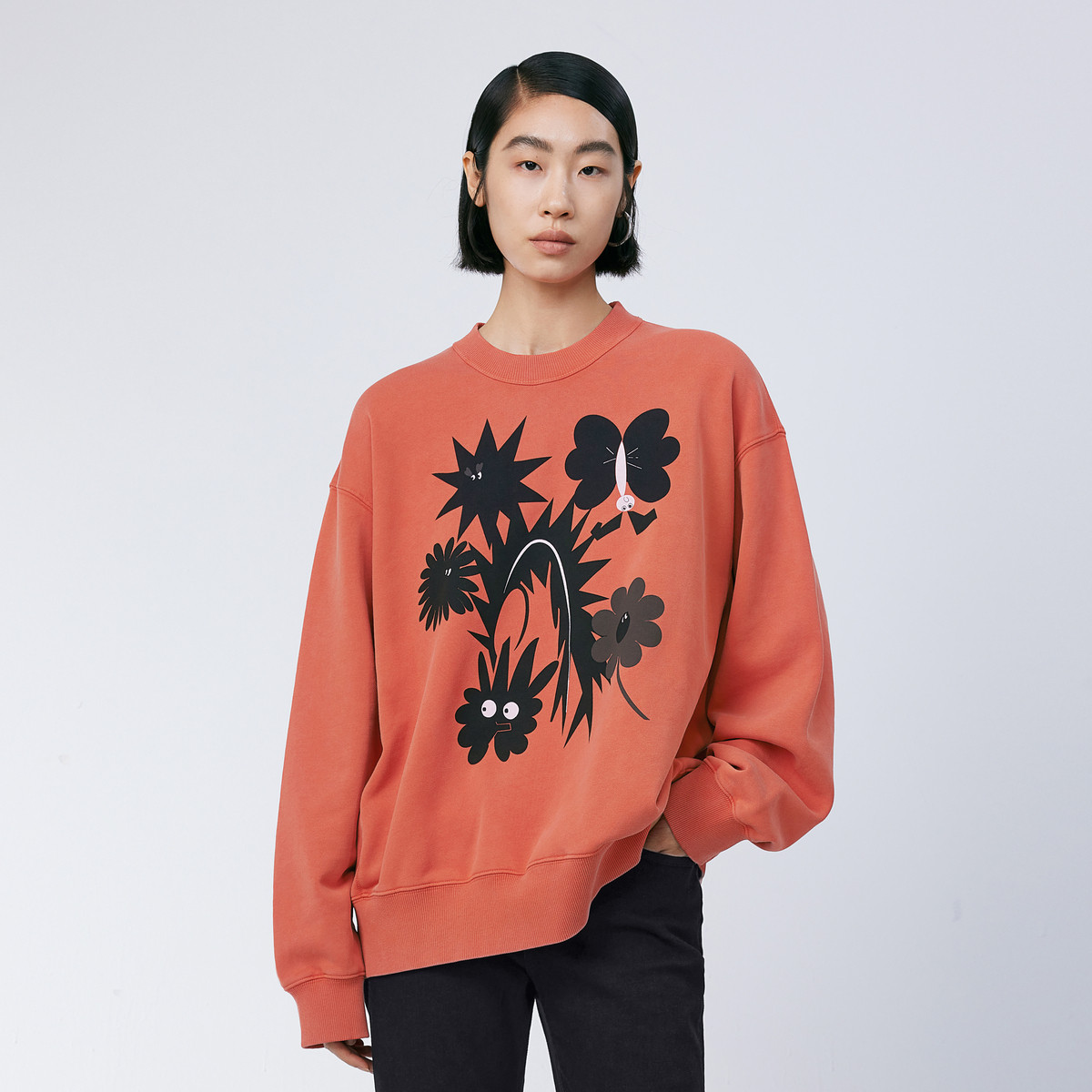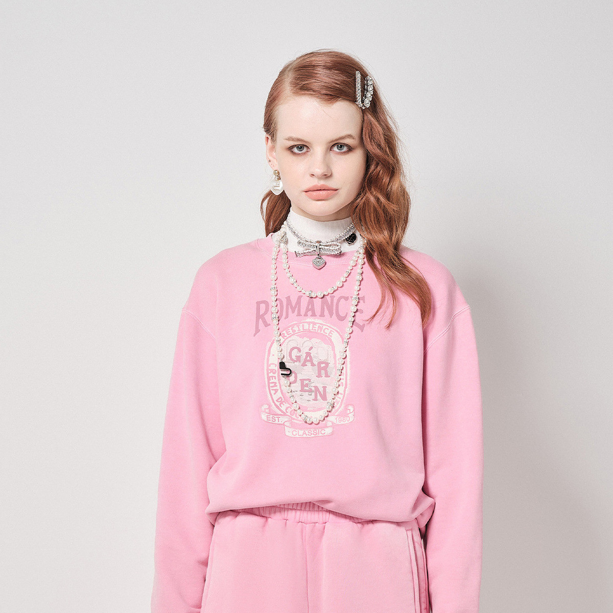 春秋复古印花oversize卫衣女圆领宽松上衣 326548