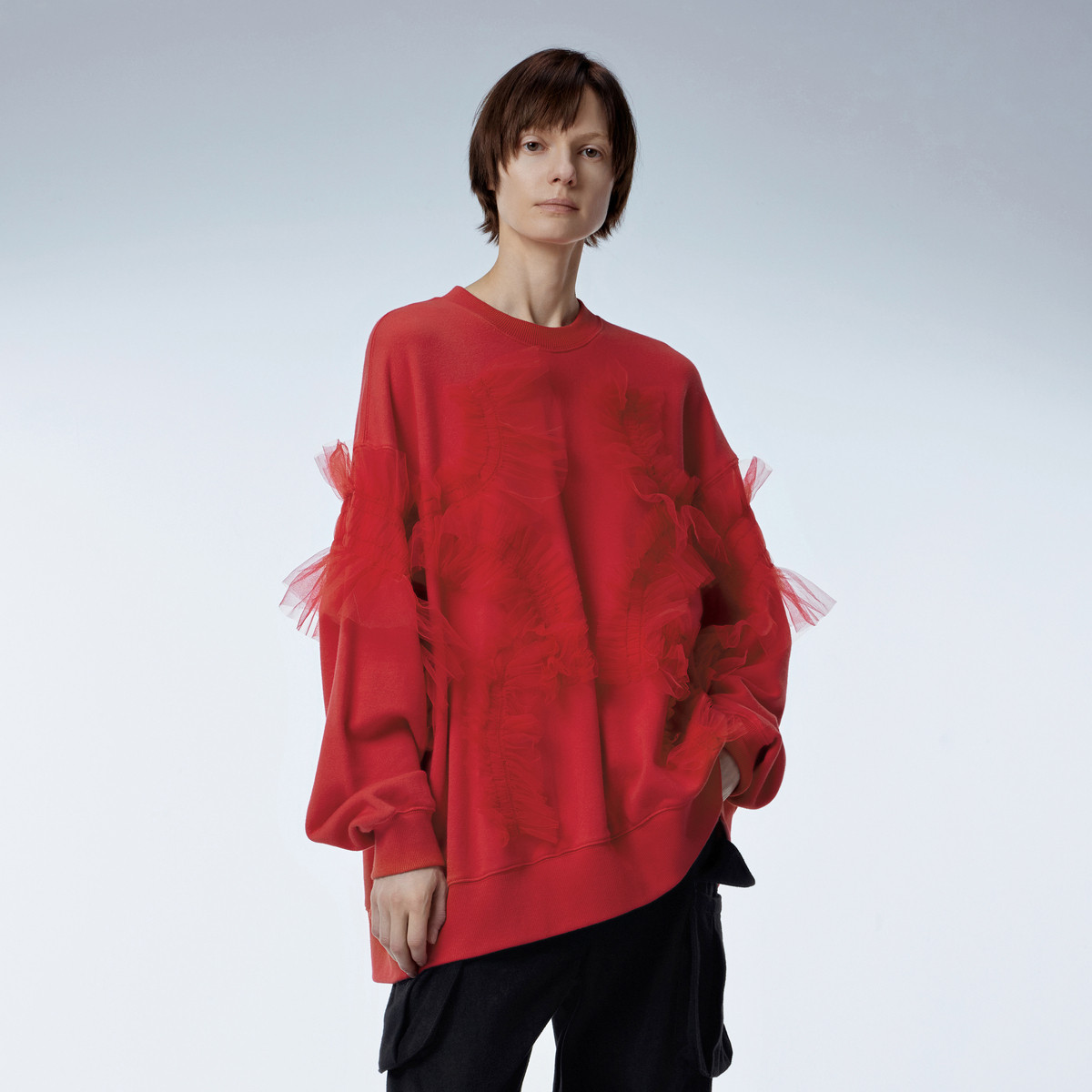 冬卫衣网纱宽松圆领上衣女 418059