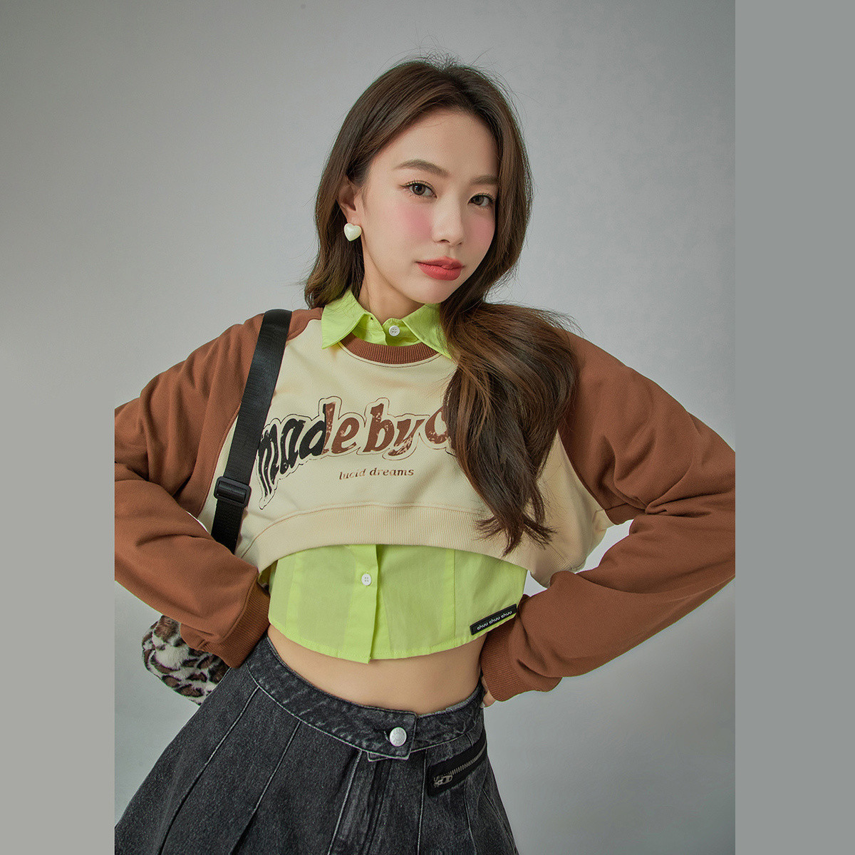 米子旗春秋季早春款圆领卫衣外套宽松短款小个子卫衣 331802