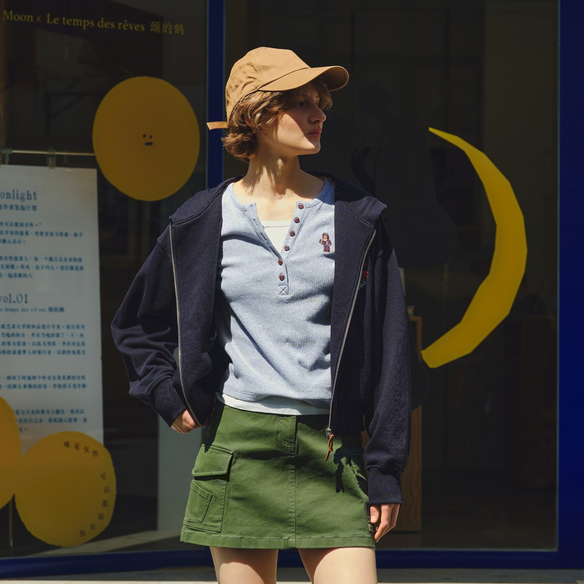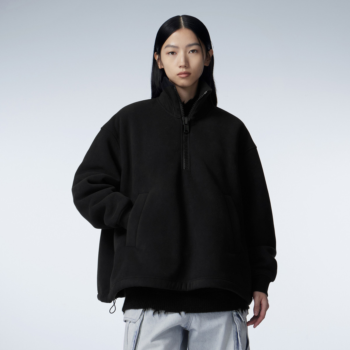 【松驰感套头卫衣】秋浅豆绿帅气立领拉链半门襟简约卫衣 827586