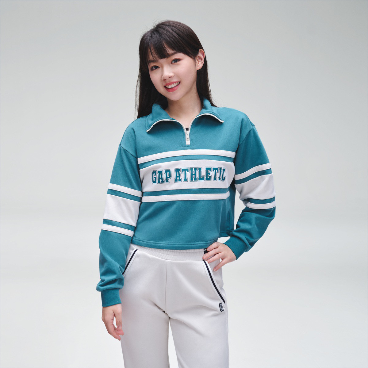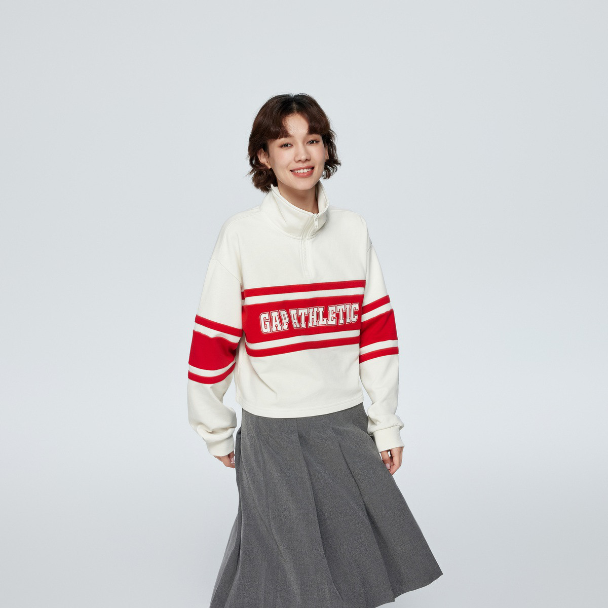 Gap女装秋2024LOGO撞色半拉链卫衣宽松甜美少女上衣405064 147802