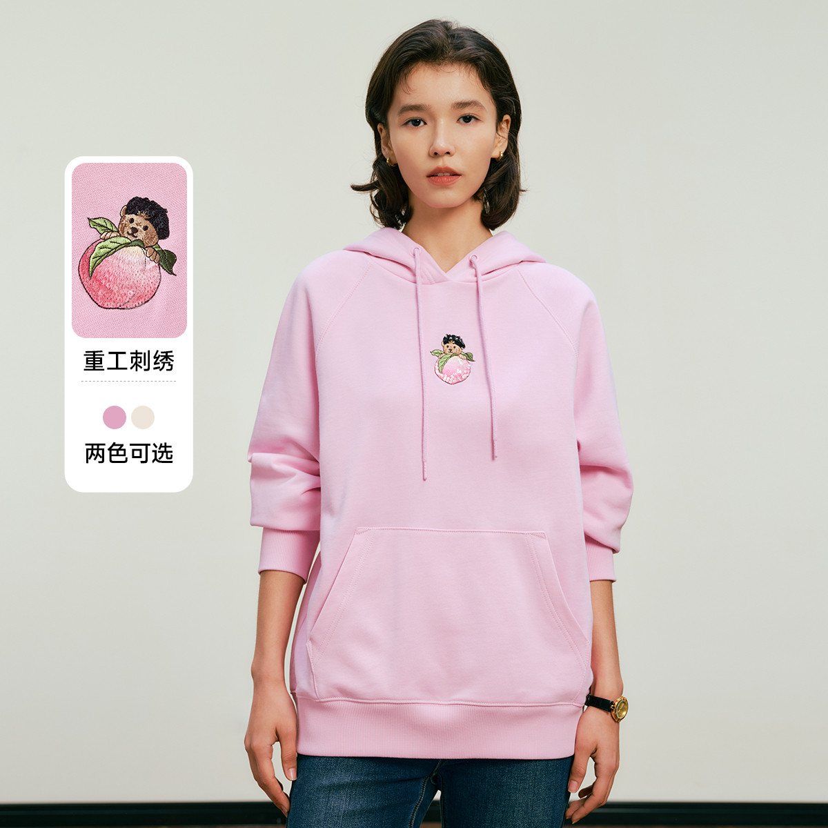 小熊春秋款桃运满满粉色连帽卫衣宽松柔软女 256385