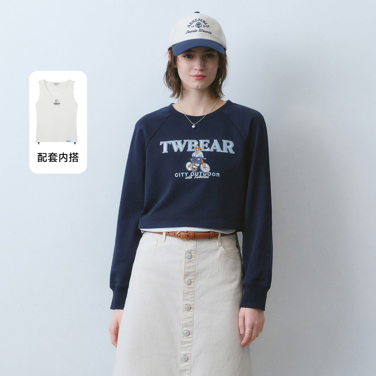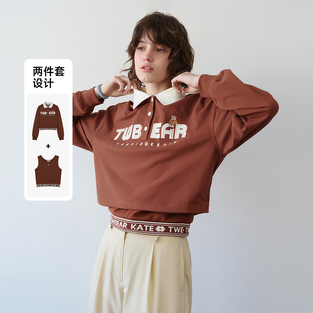 卫衣小熊两件套美拉德时髦宽松翻领短款卫衣 135105
