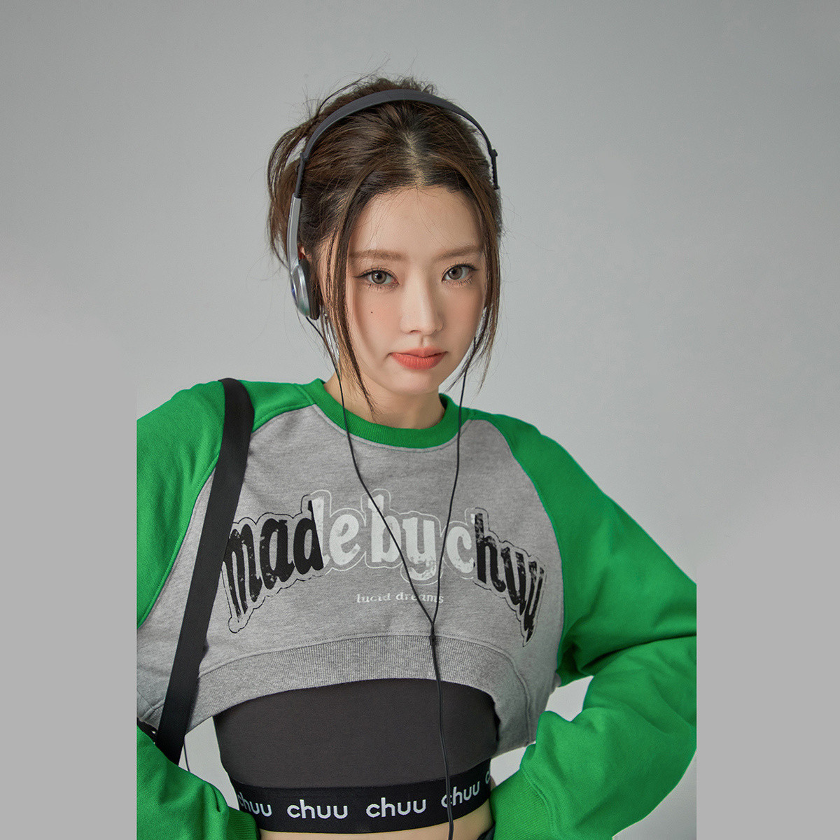米子旗春秋季早春款圆领卫衣外套宽松短款小个子卫衣 331802