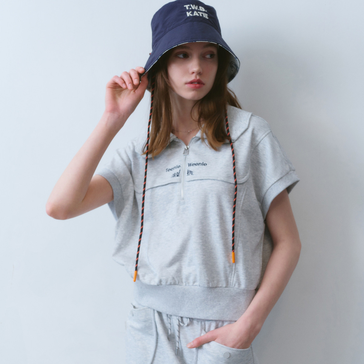 卫衣小熊女装夏季翻领无袖卫衣宽松灰色上衣女 488641