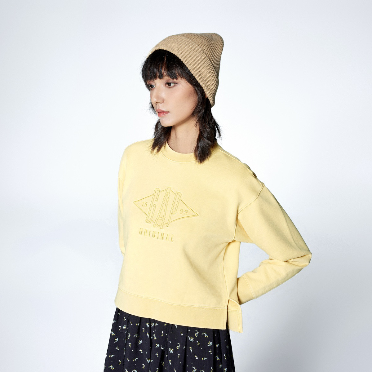 Gap女装春夏LOGO纯棉开叉刺绣圆领卫衣套头上衣874454 993178
