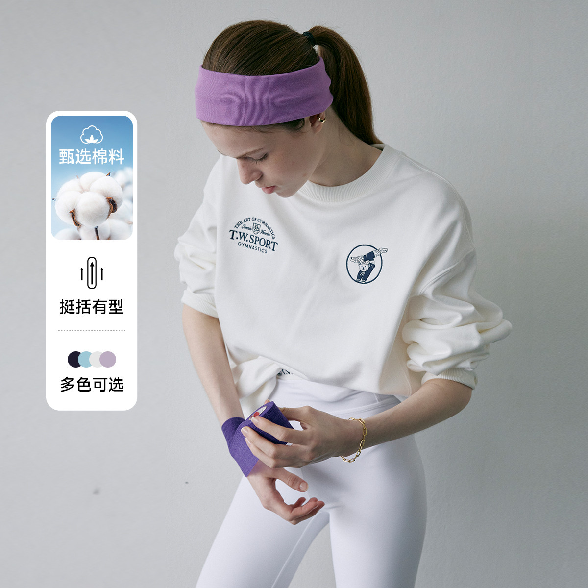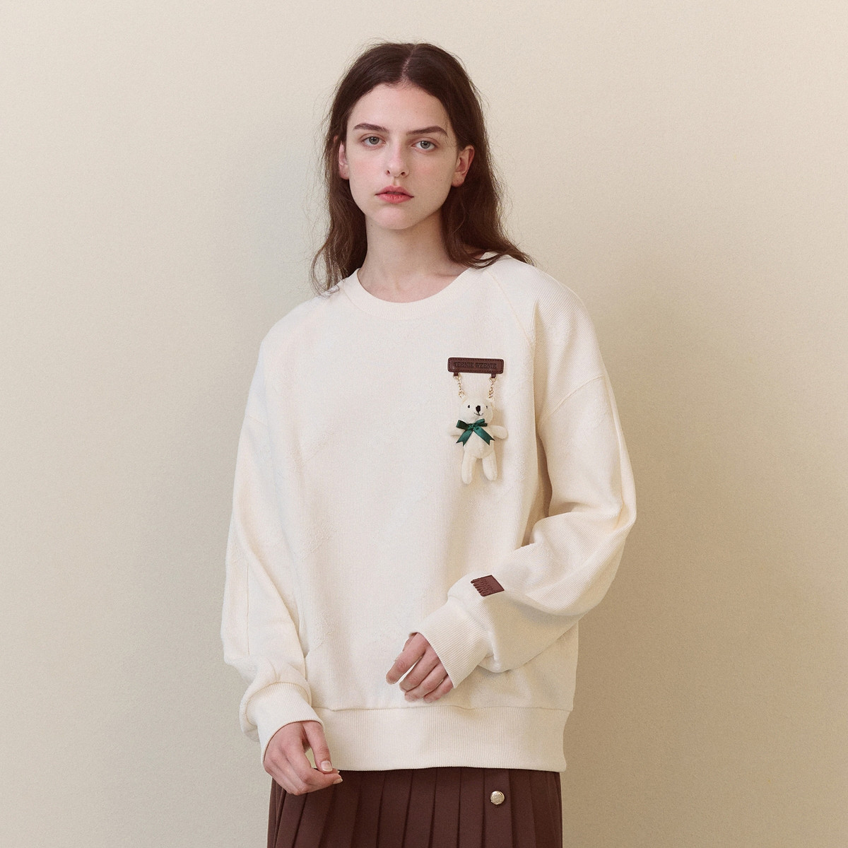 小熊春秋款圆领白色卫衣磨毛感上衣女时尚设计感女士 612097
