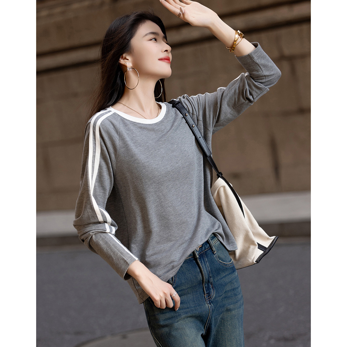 【不挑人穿】春运动风减龄撞色长袖t恤女舒适藏肉闪光棉女式t恤 210241
