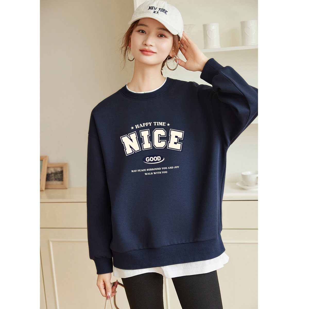 米子旗秋款圆领假两件卫衣女宽松休闲长袖上衣 275610