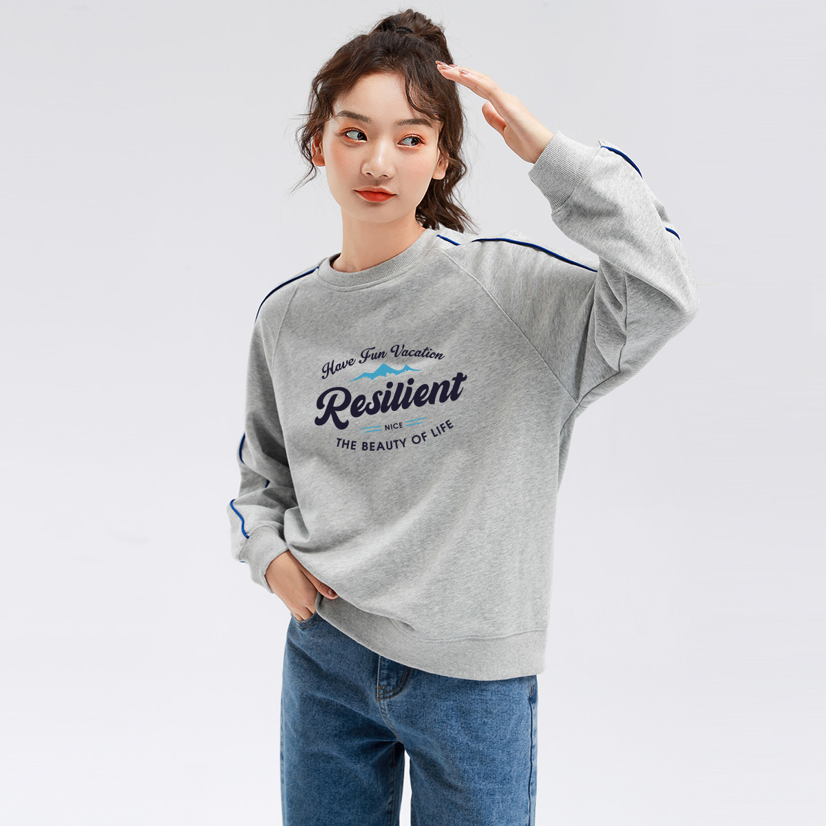 米子旗春秋季圆领撞色印花女式卫衣袖子条纹设计宽松长袖上衣 228250