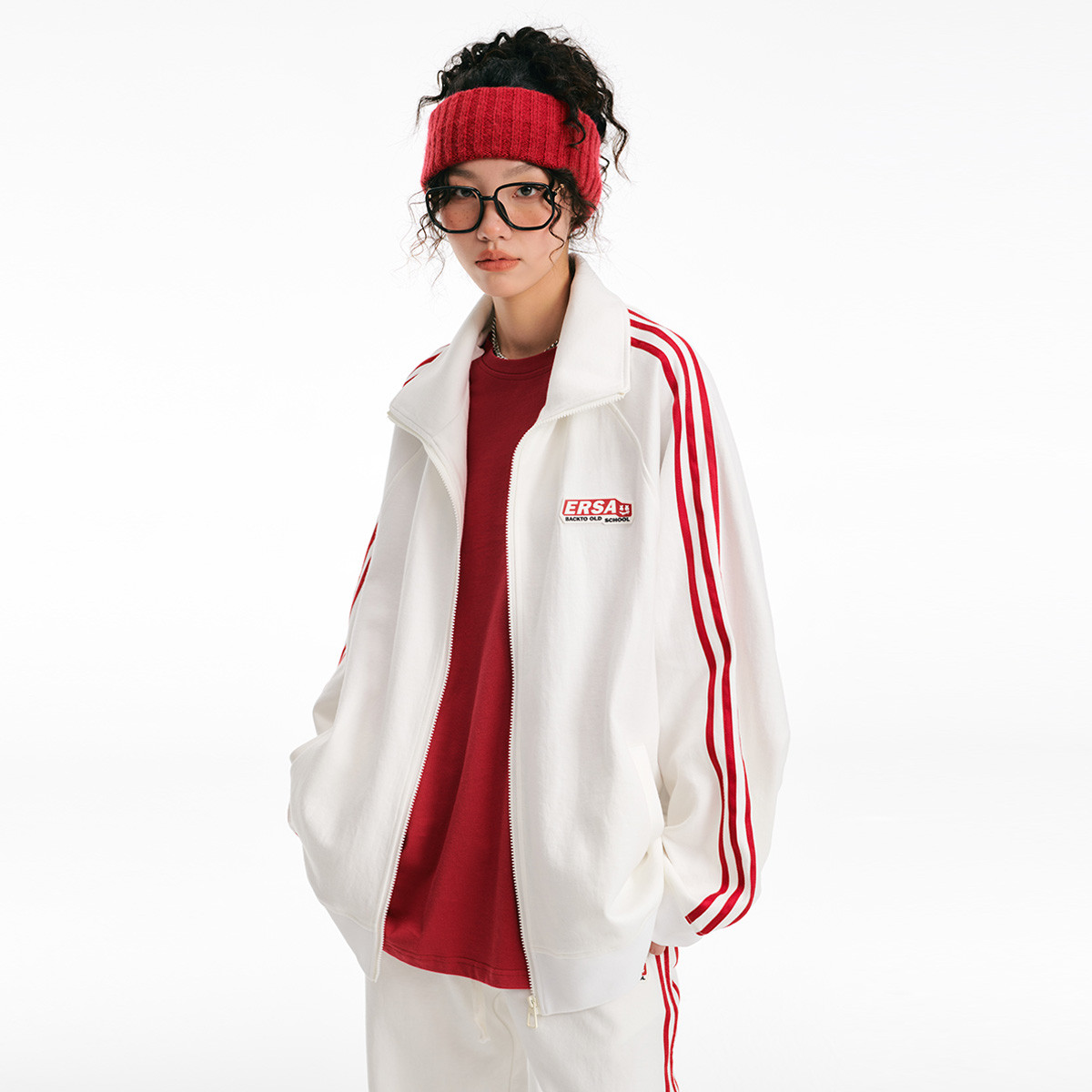 条纹撞色开衫卫衣春秋潮牌休闲复古运动服男女同款外套 249943