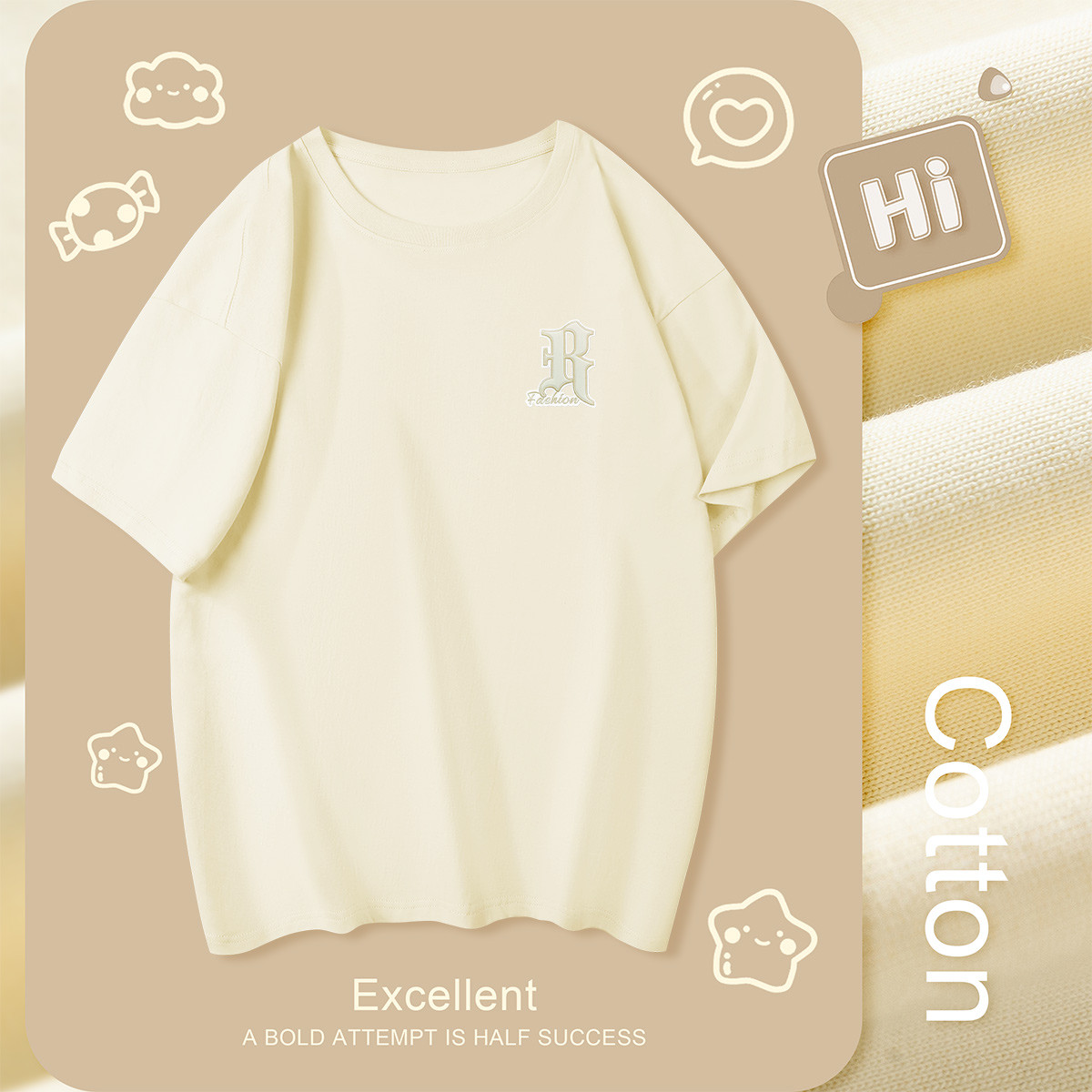 【女装】纯棉短袖t恤女士T恤宽松透气夏季薄款半袖纯色女式上衣 040979