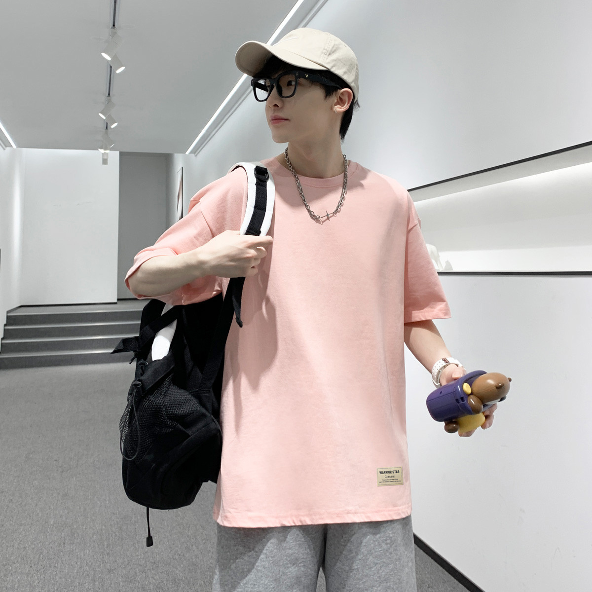 短袖t恤男纯棉宽松五分袖T恤日系潮流半袖男女简约百搭体恤上衣 124755