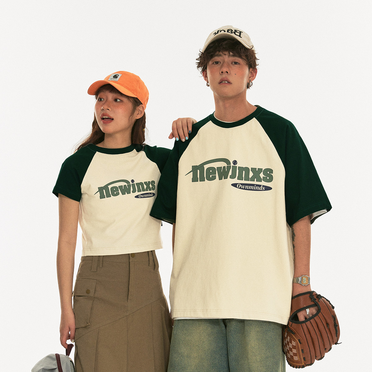 江南先生日系字母印花情侣短袖T恤男女夏季潮牌宽松辣妹风短款tee 409873