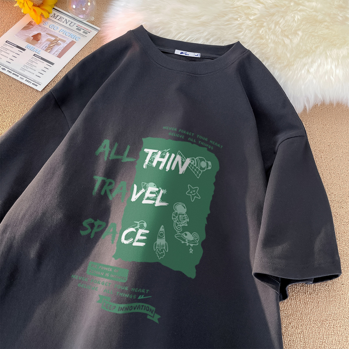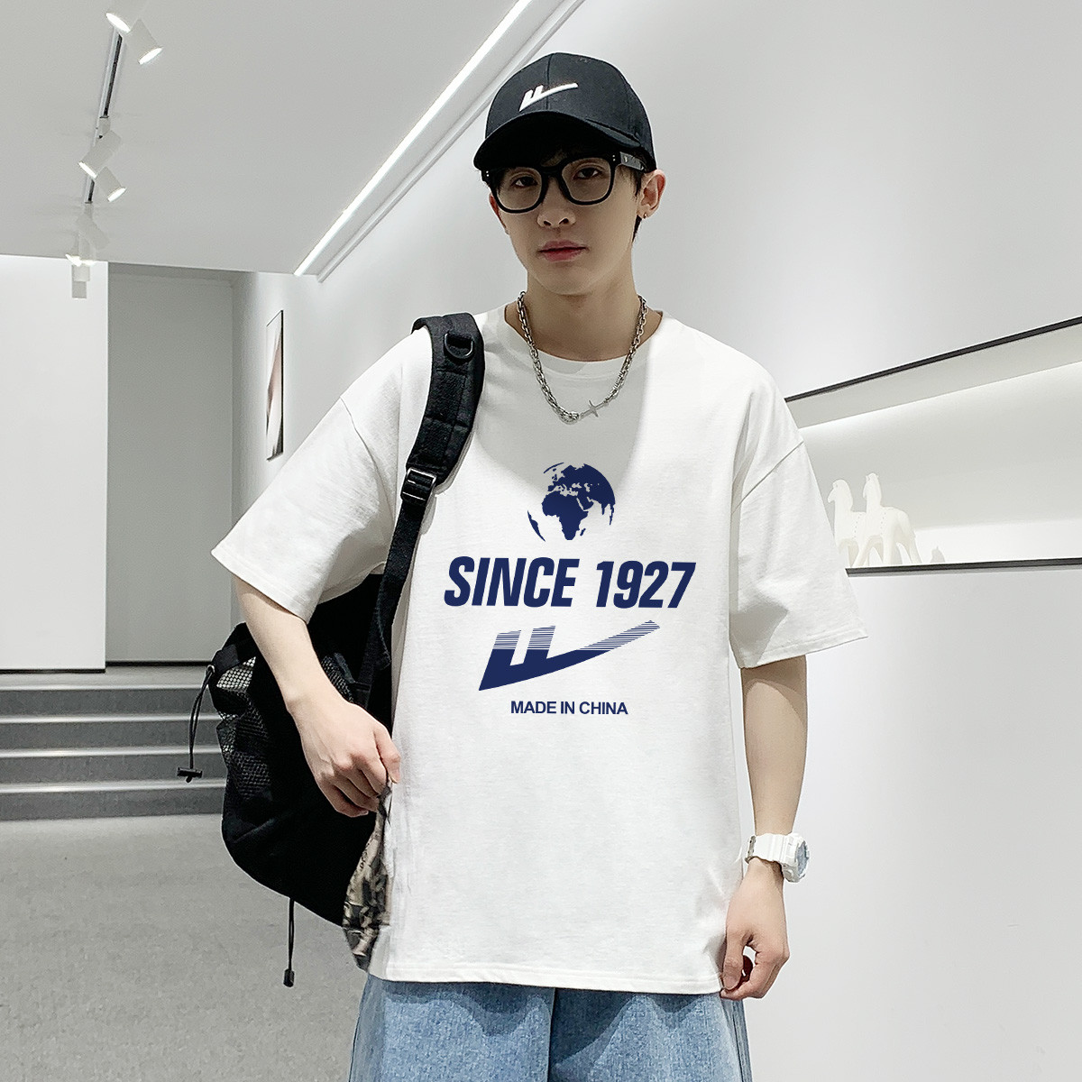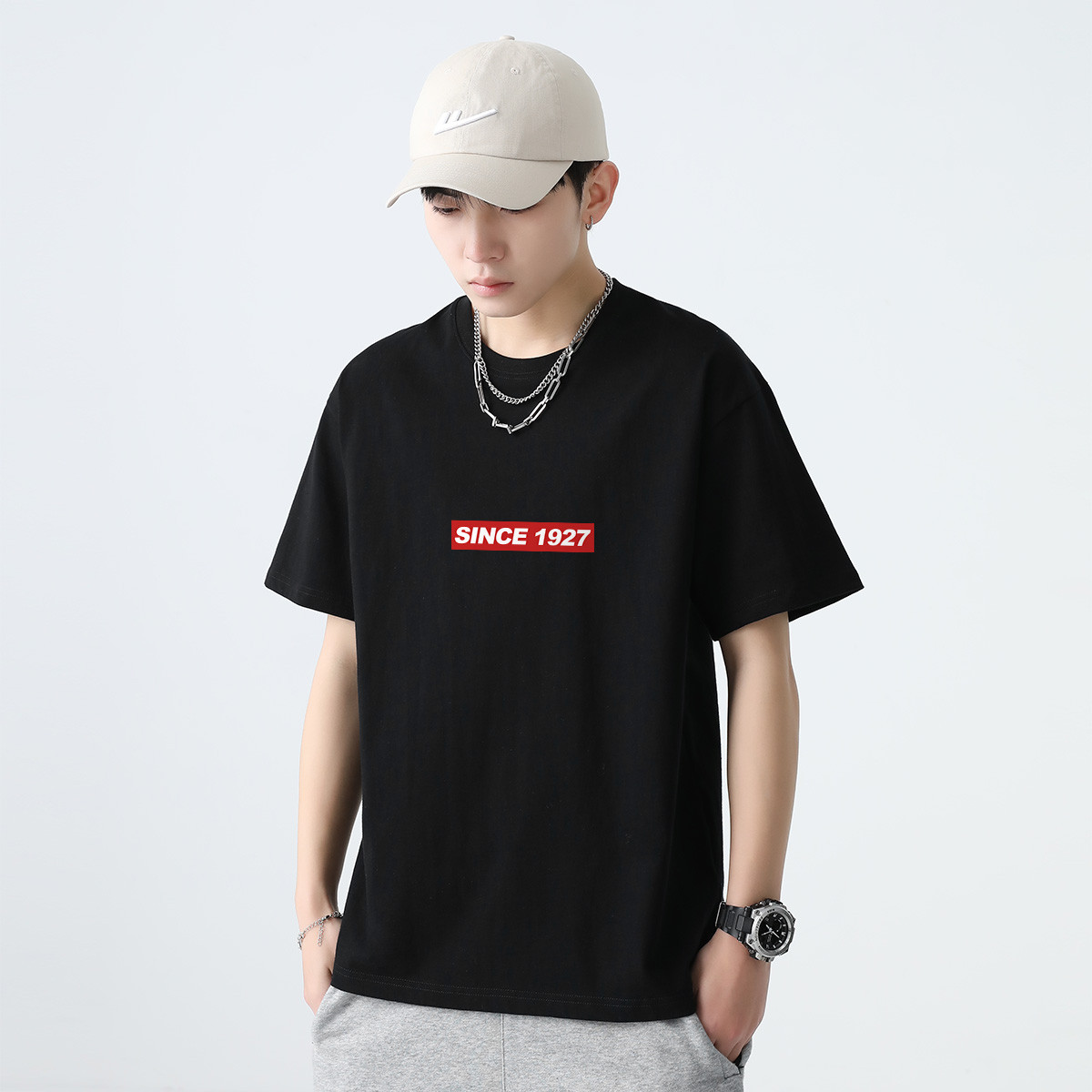 夏季短袖T恤男字母印花简约上衣百搭宽松舒适男式纯棉t恤 731091