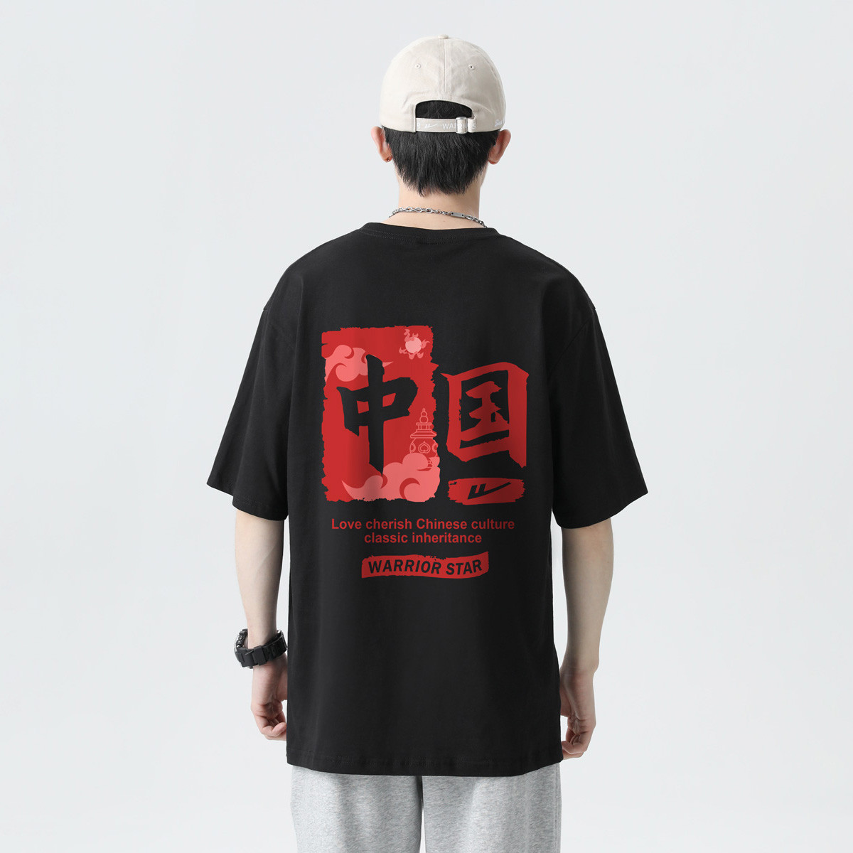 【国潮时尚】夏季纯棉舒适t恤男式中国风印花上衣青少年短袖T恤 928339