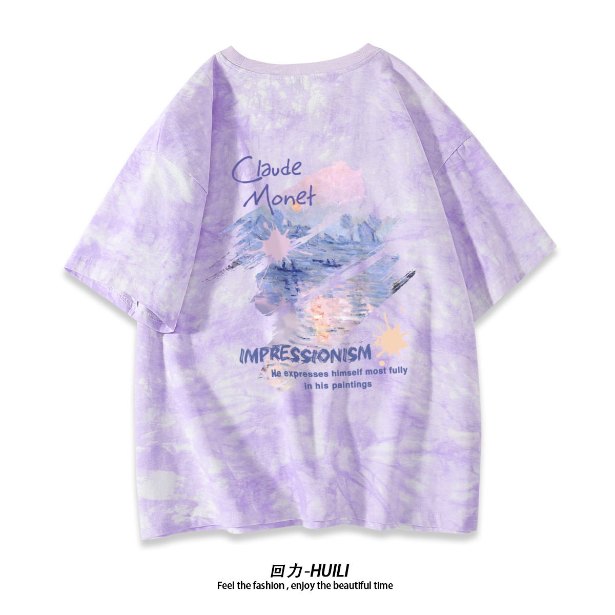 【女装】扎染短袖女式T恤夏季宽松少女感穿搭纯棉上衣 192211