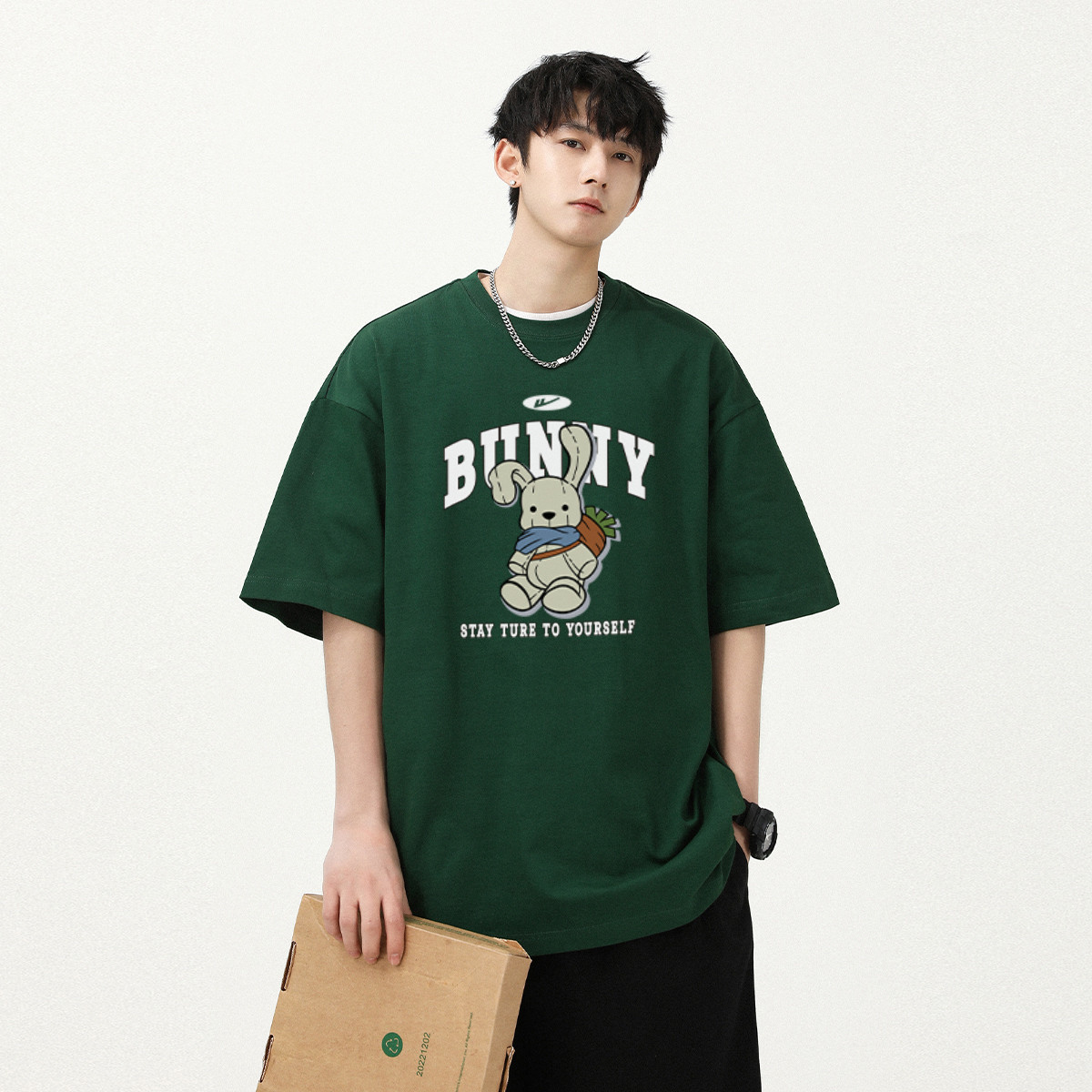 夏季纯棉短袖男宽松五分袖T恤宽松潮流半袖男女小众兔子体恤上衣 192595