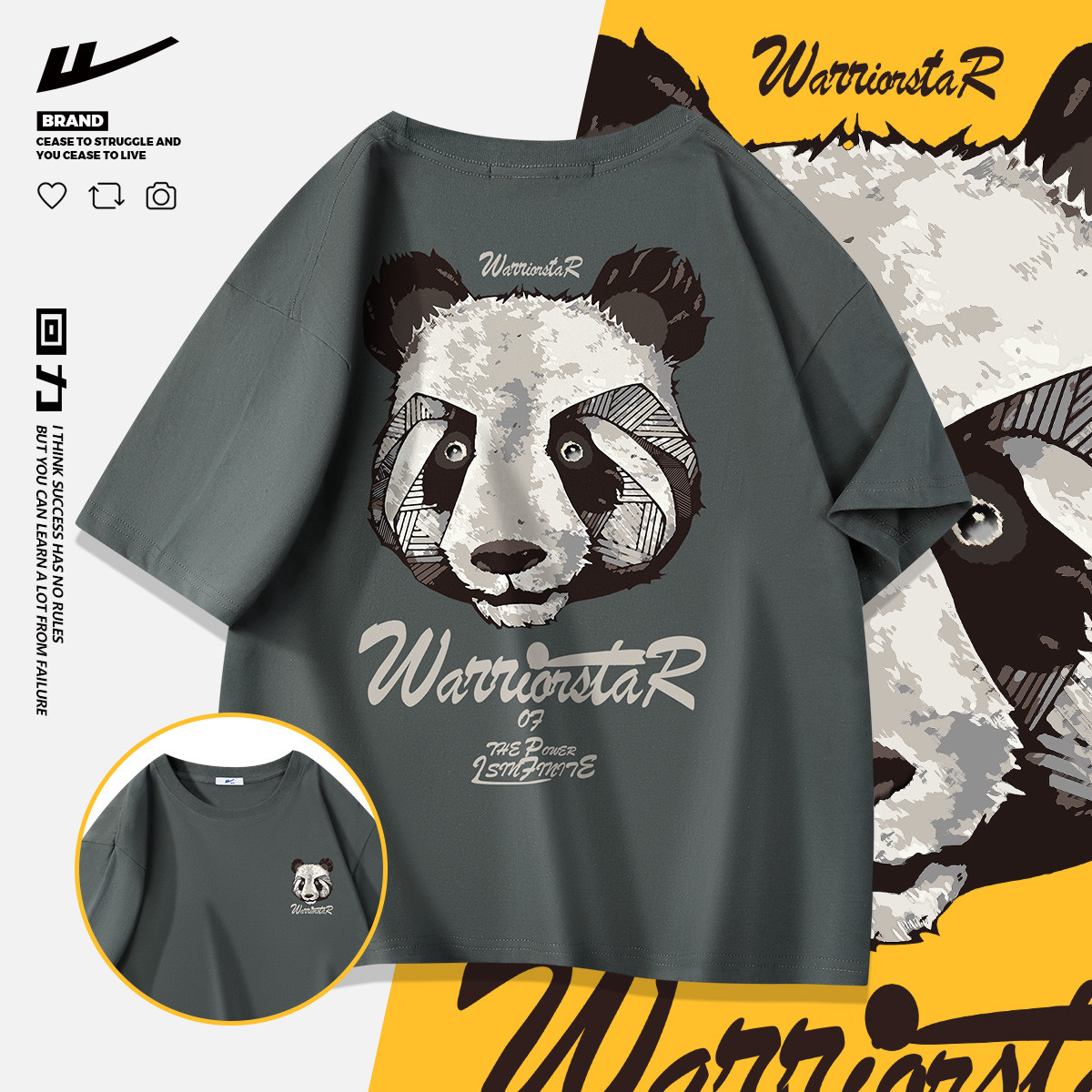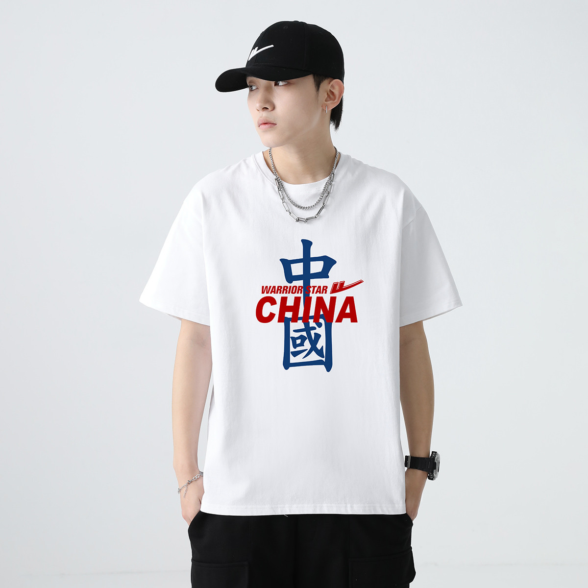 【100%纯棉】国潮复古风夏季宽松潮牌高街帅气男生短袖t恤衫 457555