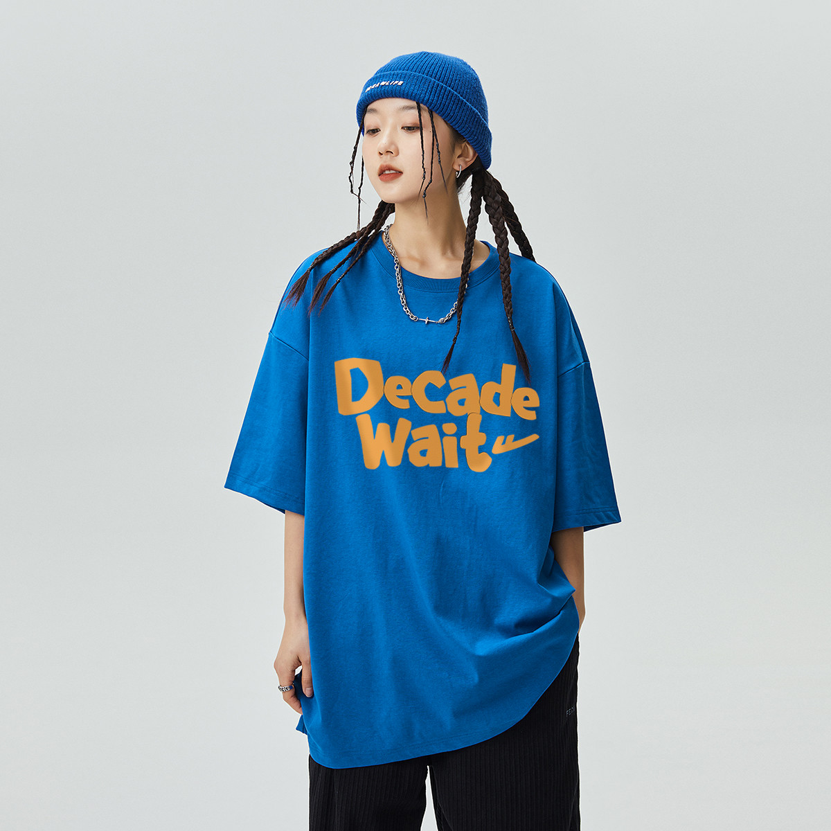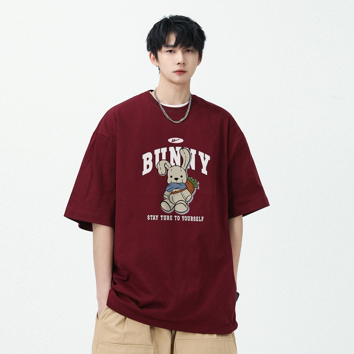 夏季纯棉短袖男宽松五分袖T恤宽松潮流半袖男女小众兔子体恤上衣 188499