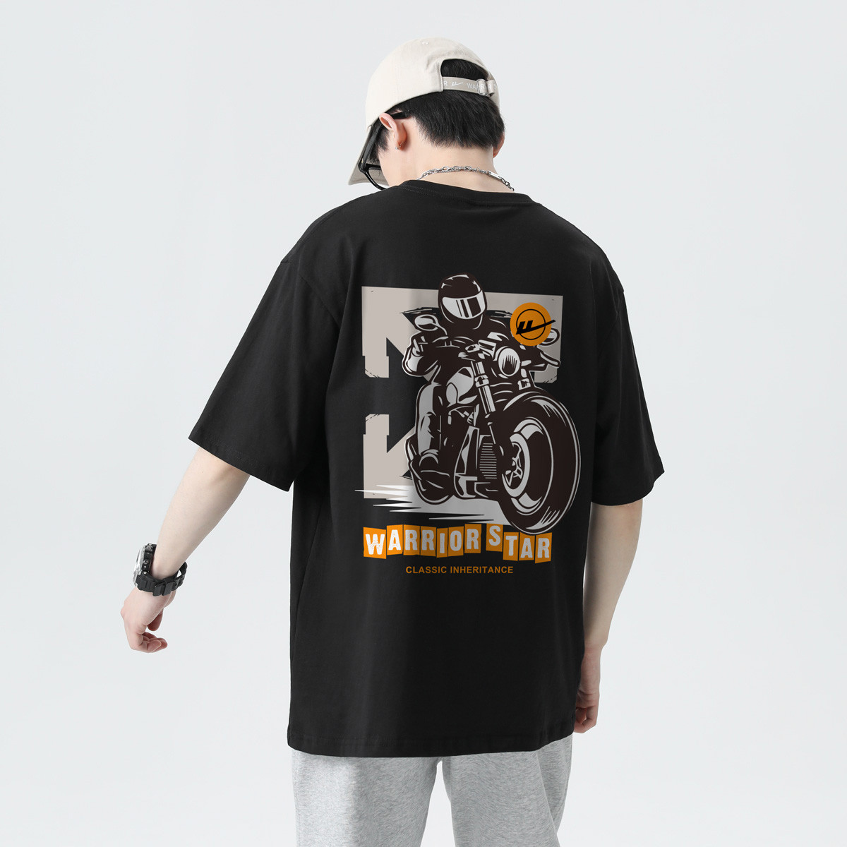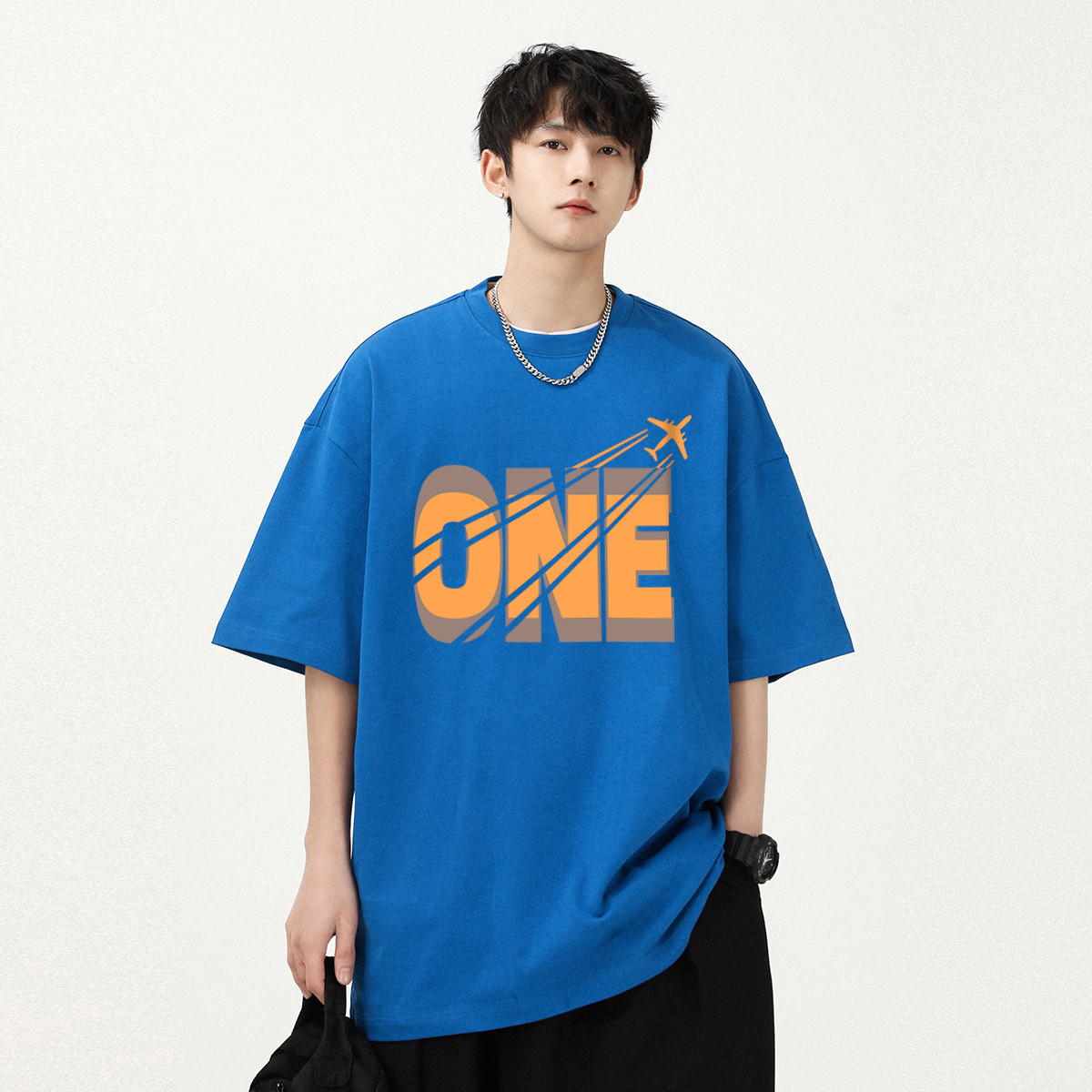 【100%棉】夏季时尚休闲百搭运动男士T恤日系宽松短袖T恤男 995859