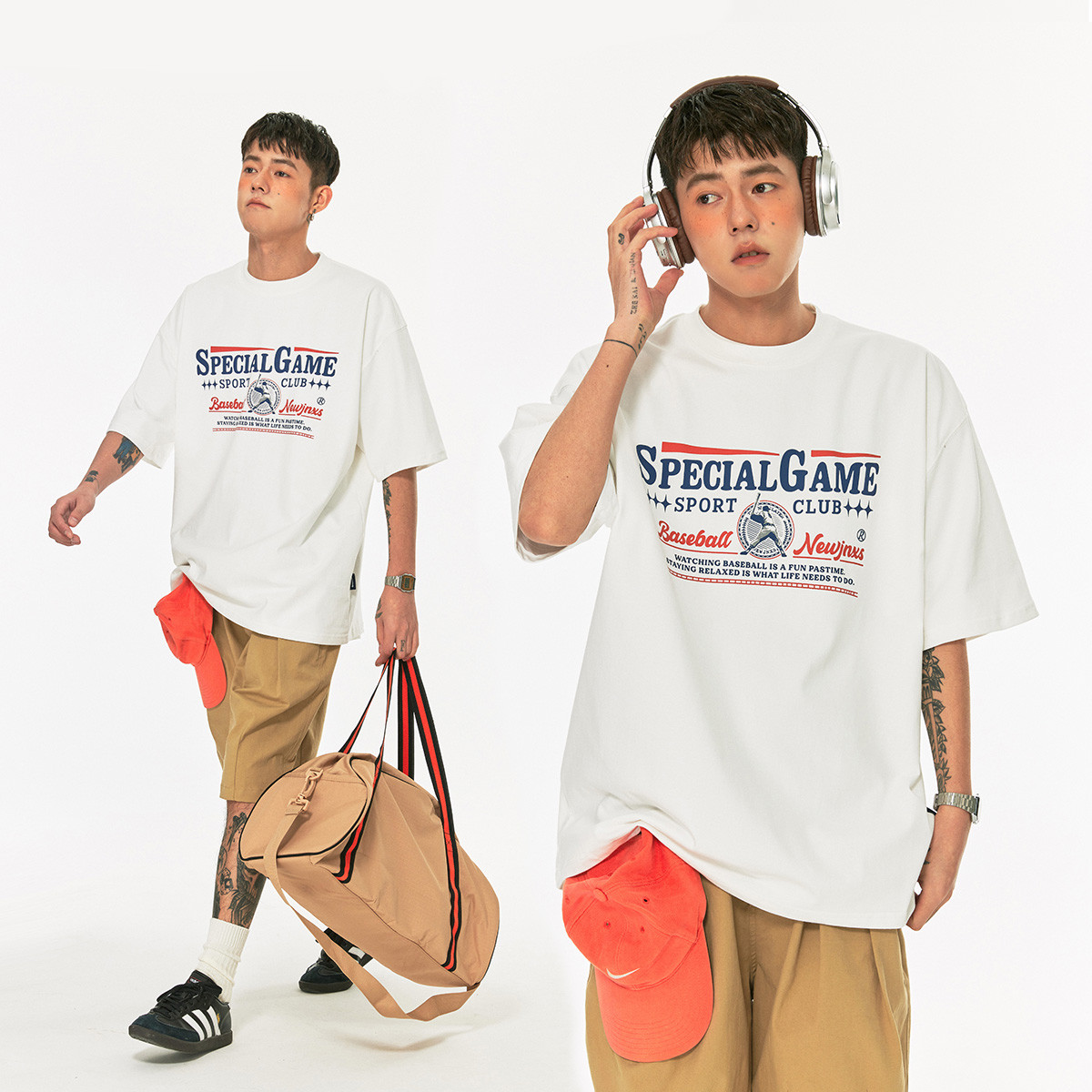 JNXS江南先生日系复古趣味棒球字母印花短袖T恤男夏季潮牌宽松tee 704273