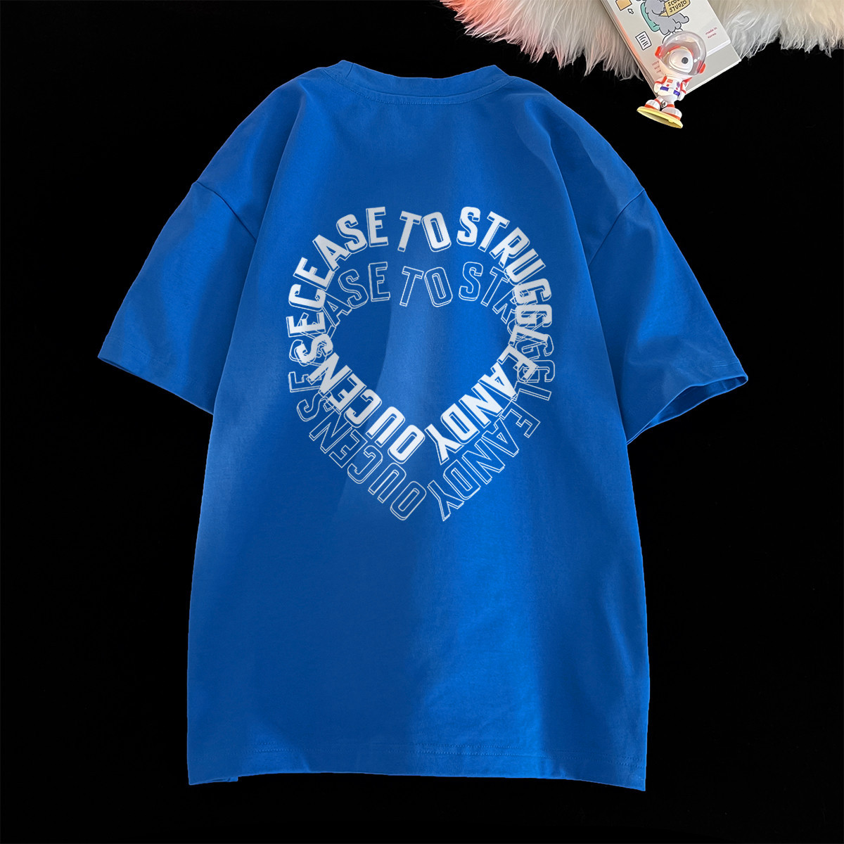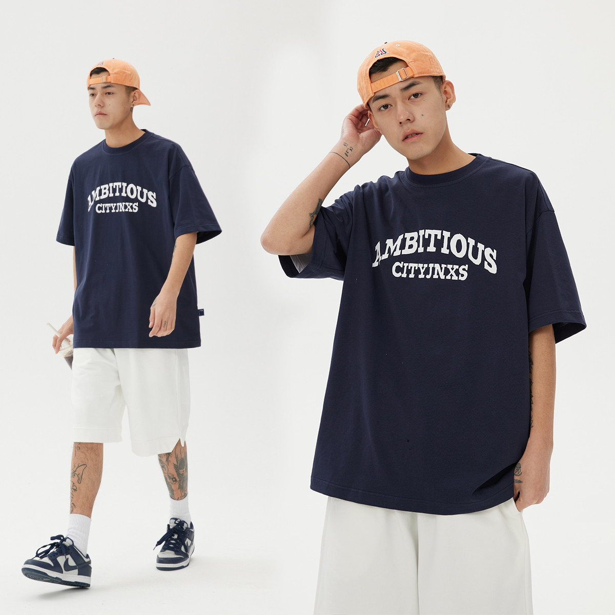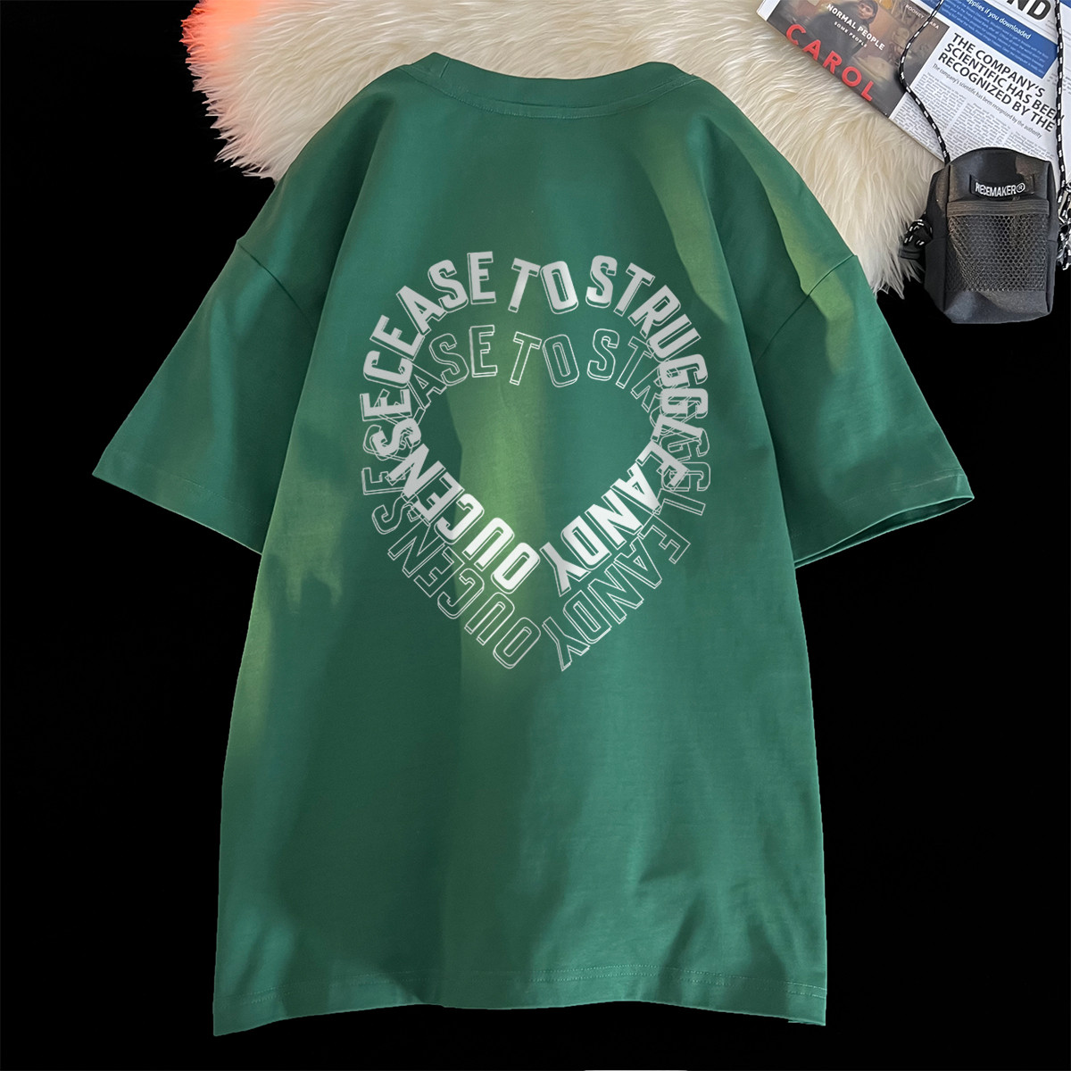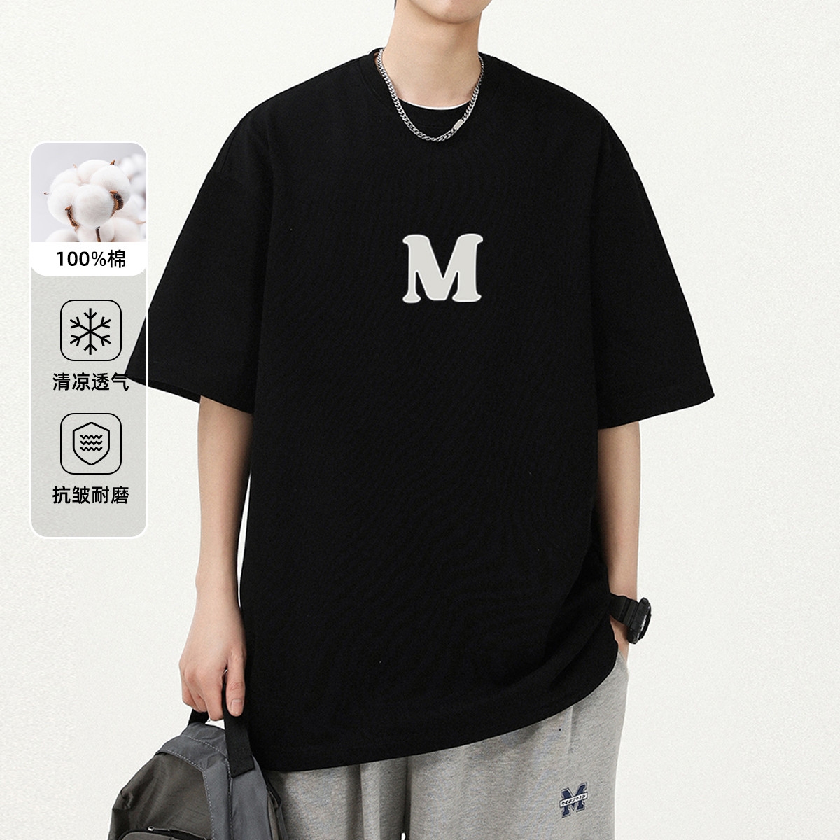 重磅T恤男宽松圆领纯棉短袖创意字母款情侣T恤简约运动潮流上衣 152275